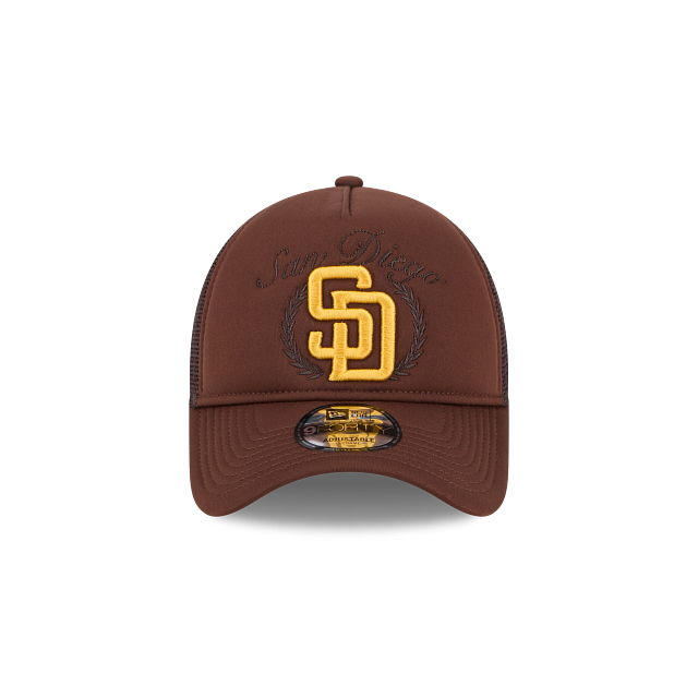 Esta gorra New Era 9FORTY AF Trucker de San Diego Padres de la colección MLB Fairway presenta el logotipo de los Padres rodeado de laureles bordado en los paneles frontales abajo del nombre del equipo, malla al reverso y el flag de New Era bordado en el lado izquierdo. Luce con estilo y cómprala ya.