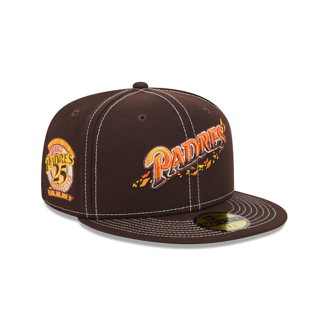 Esta gorra plana New Era 59FIFTY de San Diego Padres de la colección MLB Fall Foliage presenta un diseño inspirado en la estación de otoño con el nombre de los Padres bordado en los paneles frontales, un parche conmemorativo del lado derecho, el MLB Batterman al reverso y el flag de New Era bordado del lado izquierdo. Cómprala ya.