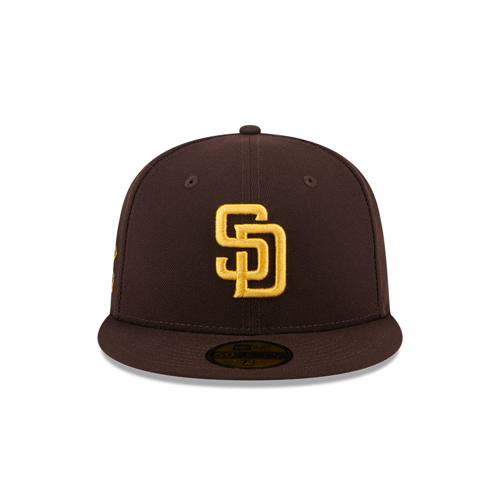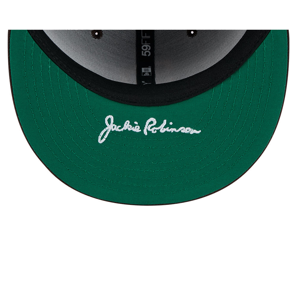 Esta gorra plana New Era 59FIFTY de San Diego Padres de la colección MLB Jackie Robinson Day 2025 presenta el logotipo de los Padres bordado en los paneles frontales, un parche conmemorativo Jackie Robinson Breaking Barriers del lado derecho, la firma del jugador en el undervisor, el MLB Batterman al reverso y el flag de New Era bordado del lado izquierdo. Cómprala ya.