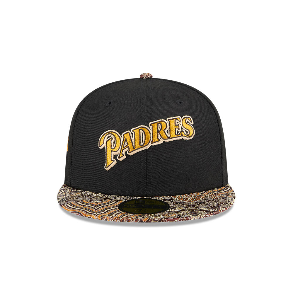 Esta gorra plana New Era 59FIFTY de San Diego Padres de la colección MLB Jacquard Visor presenta un diseño con el nombre de los Padres bordado en los paneles frontales, un parche All Star Game del lado derecho, el visor jacquard, el MLB Batterman en la parte trasera y el flag de New Era bordado del lado izquierdo. Luce con estilo y cómprala ya.