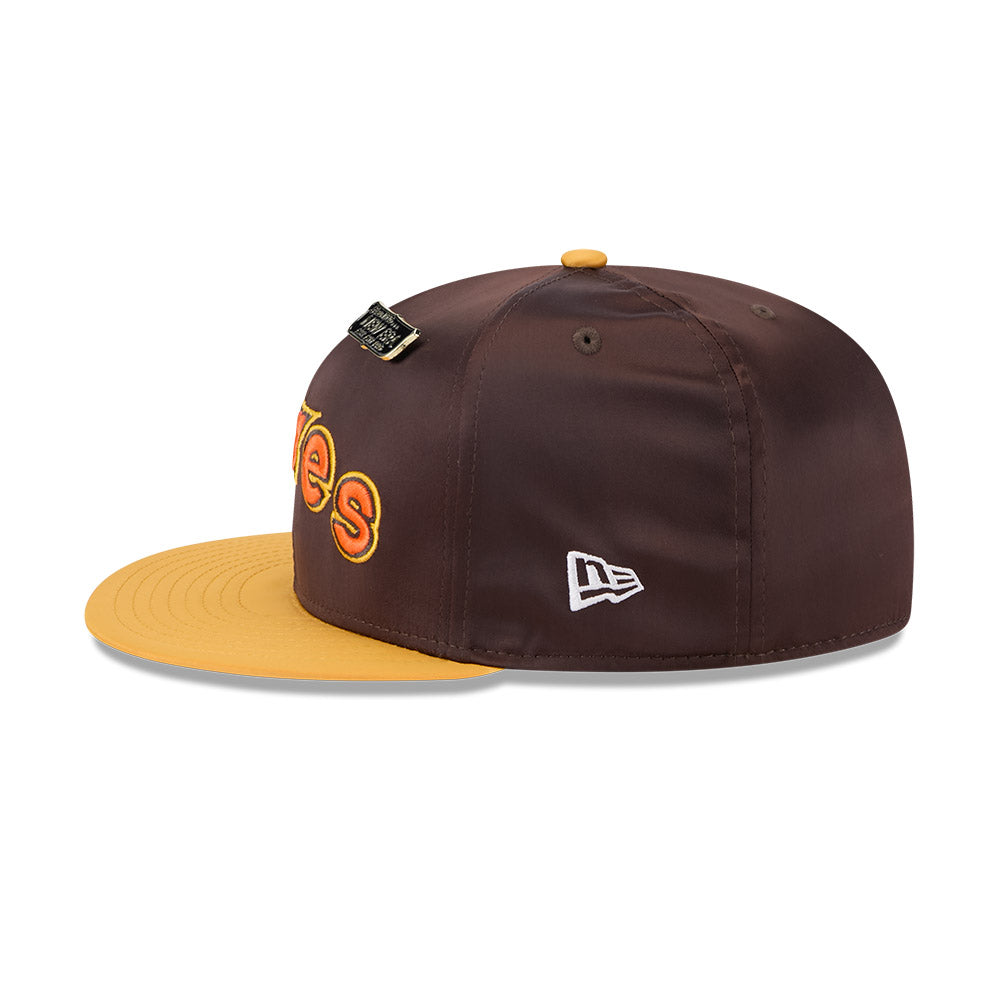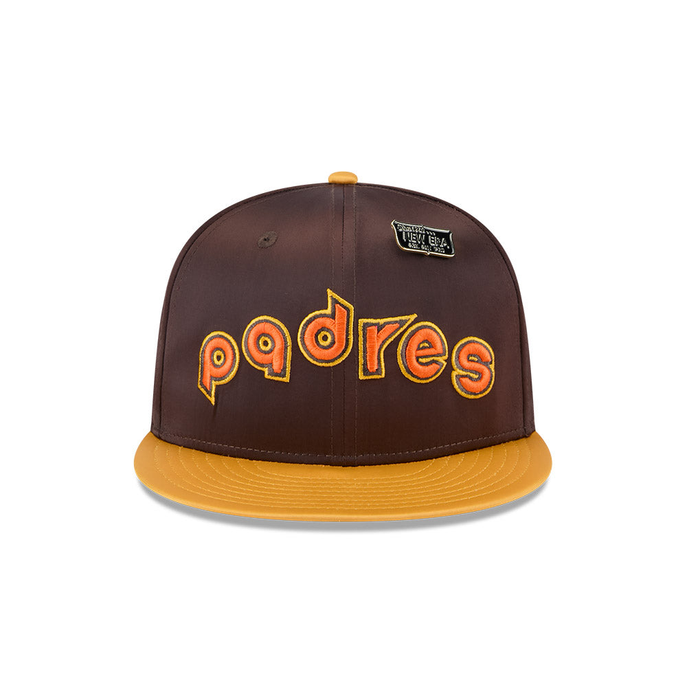 Esta gorra plana New Era 59FIFTY de San Diego Padres de la colección MLB Satin presenta un diseño satinado con el nombre de los Padres bordado en los paneles frontales acompañado de un pin New Era, el logotipo del equipo del lado derecho, el MLB Batterman al reverso y el flag de New Era bordado del lado izquierdo. Cómprala ya.