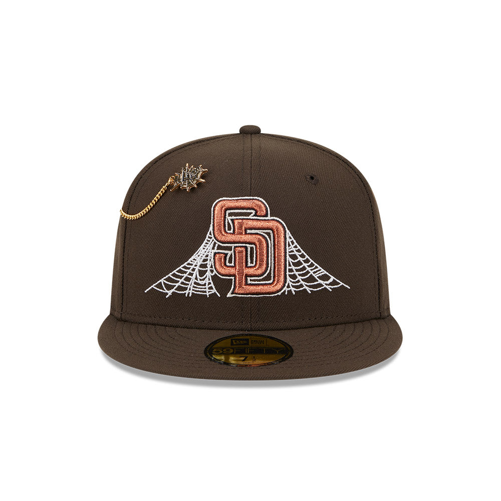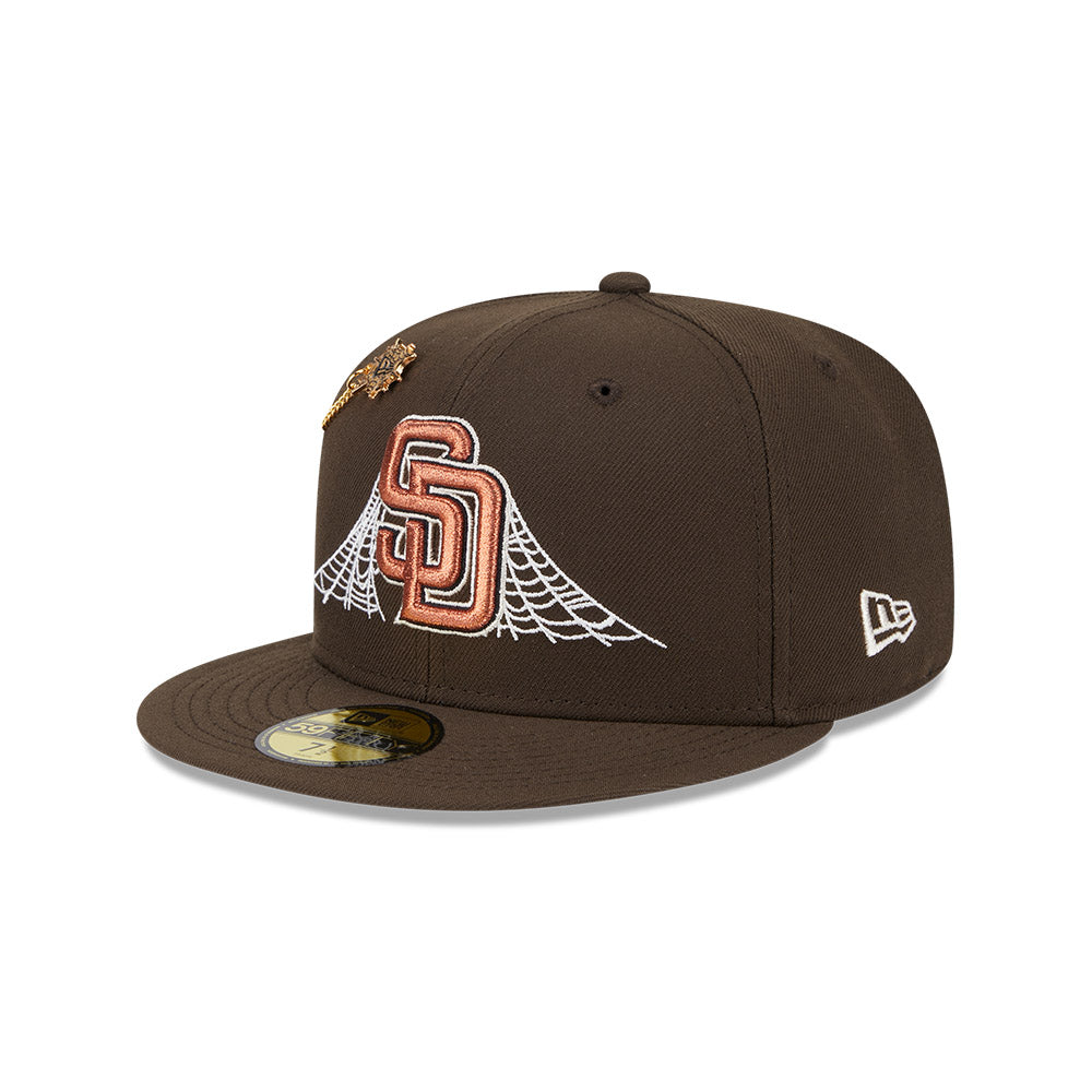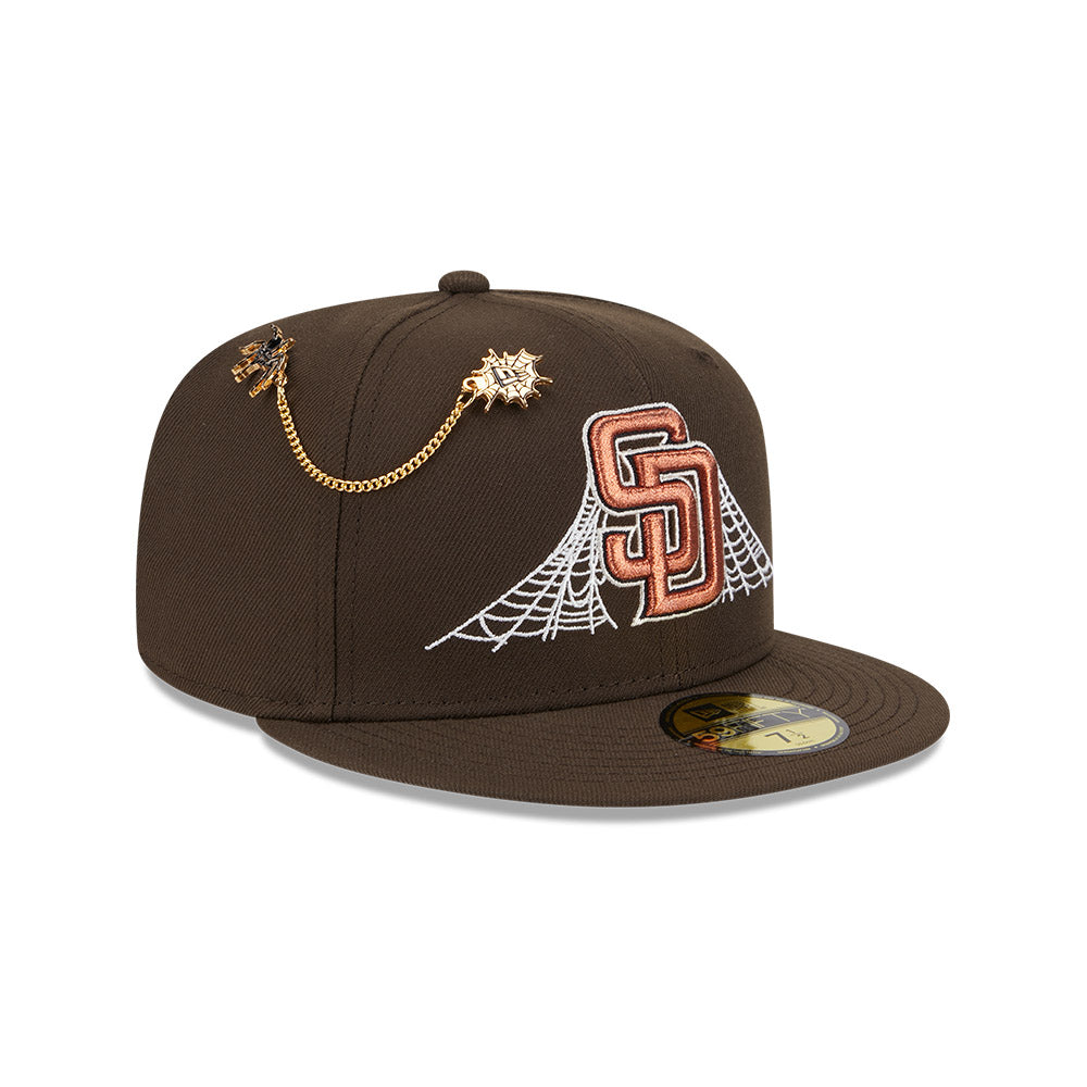 Esta gorra plana New Era 59FIFTY de San Diego Padres de la colección MLB Spider Pin presenta un diseño con el logotipo de los Padres con telarañas bordado en los paneles frontales, un pin de araña con su telaraña, el MLB Batterman al reverso y el flag de New Era bordado del lado izquierdo. Cómprala ya.