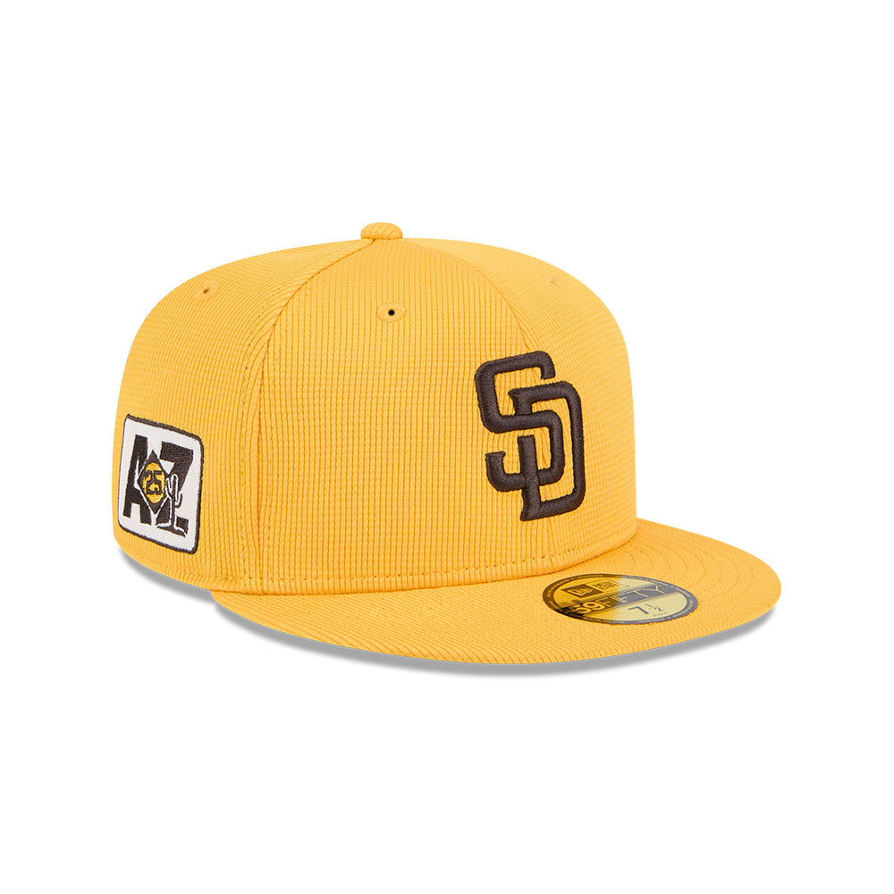 Esta gorra plana New Era 59FIFTY de San Diego Padres de la colección MLB Spring Training 2025 presenta el logotipo de los Padres bordado en los paneles frontales, un parche Spring Training del lado derecho, el MLB Batterman al reverso y el flag de New Era bordado del lado izquierdo. Apoya a tu equipo y cómprala ya.
