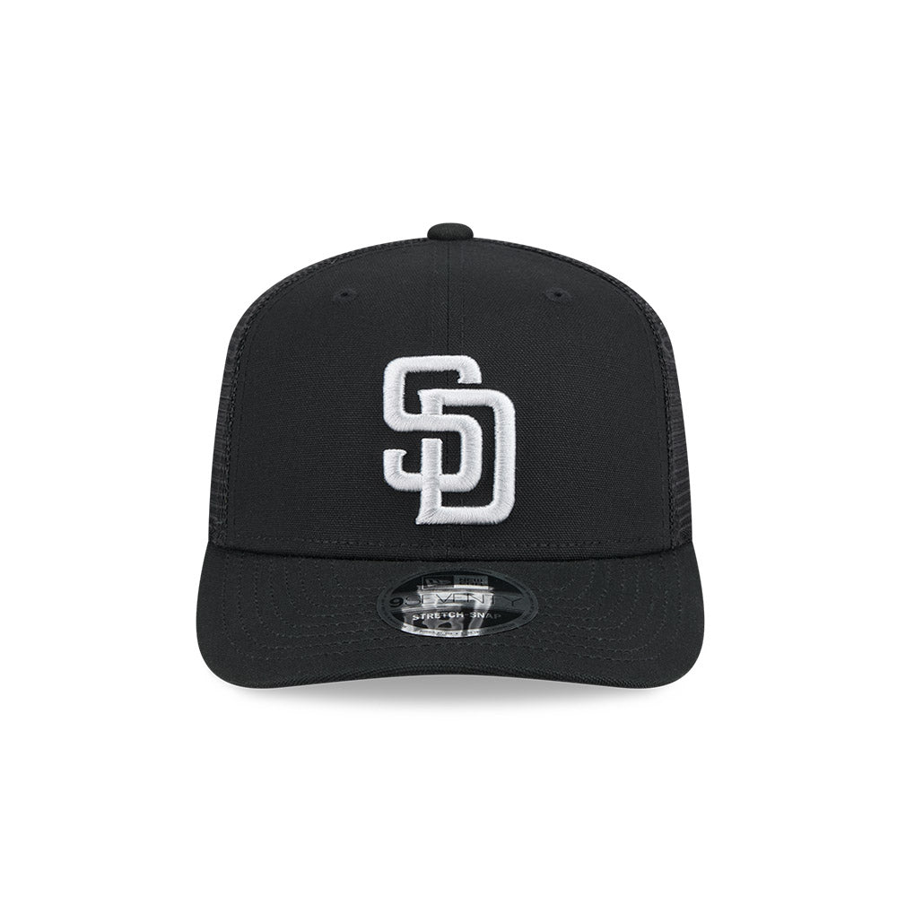 Esta gorra curva New Era 9SEVENTY Stretch Snap de San Diego Padres de la colección MLB Trucker Canvas presenta el logotipo de los Padres bordado en los paneles frontales, malla trucker al reverso y el flag de New Era bordado del lado izquierdo. Cómprala ya.