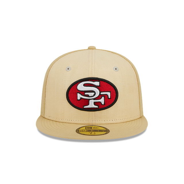 Esta gorra New Era 59FIFTY de San Francisco 49Ers de la colección NFL Raffia Front presenta el logotipo de los 49Ers bordado en los paneles frontales, un parche conmemorativo del lado derecho, el logo de la liga al reverso y el flag de New Era bordado en el lado izquierdo. Apoya a tu equipo y cómprala ya.
