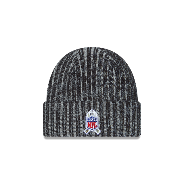Este Knit New Era de San Francisco 49Ers de la colección NFL Salute to Service 2023 presenta un diseño con camuflaje predominantemente negro, el logotipo de los 49Ers bordado al frente, el logo de NFL al reverso, la bandera de Estados Unidos y el flag de New Era a los costados. Apoya a tu equipo y cómpralo ya.