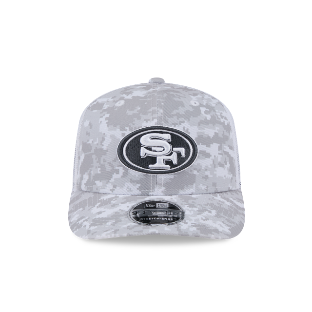 Esta gorra curva New Era 9SEVENTY de San Francisco 49Ers de la colección NFL Salute to Service 2024 presenta un diseño de camuflaje con el logotipo de los 49Ers bordado en los paneles frontales, la bandera de Estados Unidos del lado derecho, malla estilo trucker y el logo de la NFL al reverso y el flag de New Era bordado del lado izquierdo. Apoya a tu equipo y cómprala ya.
