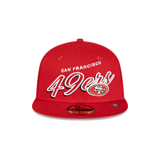 Esta gorra plana New Era 59FIFTY de San Francisco 49Ers de la colección NFL Script Sided presenta un diseño con el nombre y logotipo de los 49Ers bordados en los paneles frontales, un parche conmemorativo del lado derecho, el logo de la liga al reverso y el flag de New Era bordado del lado izquierdo. Luce con estilo y cómprala ya.