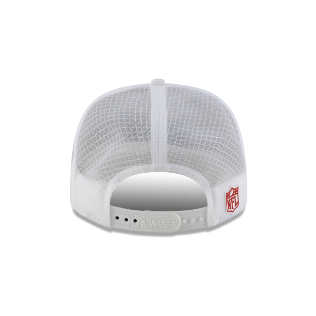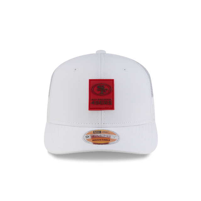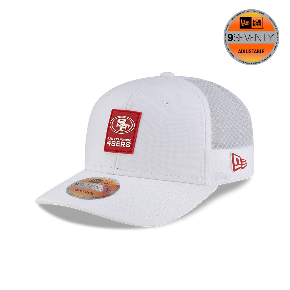Presenta el logotipo de los 49Ers en silicón tipo engomado en los paneles frontales, malla trucker ligera para mejor ventilación, el logo de la NFL en la parte derecha de atrás y el flag de New Era engomado del lado izquierdo. Apoya a tu equipo y cómprala ya.
