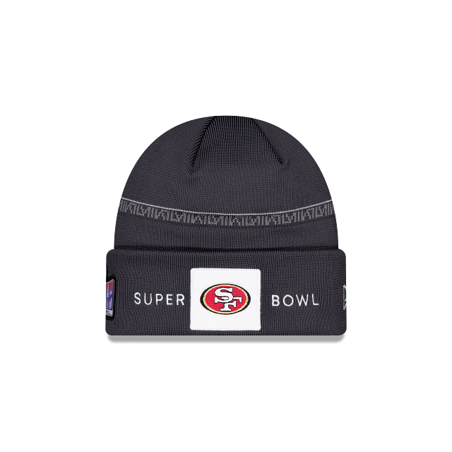 Los San Francisco 49Ers están listos para presentarse en el Super Bowl con este Knit New Era de la colección NFL Sideline Opening Night que presenta el logotipo de los 49Ers al frente, el parche del Super Bowl LVIII del lado derecho, el logo de la NFL al reverso y el flag de New Era bordado en el lado izquierdo. No te pierdas este artículo de colección. Cómpralo ya.