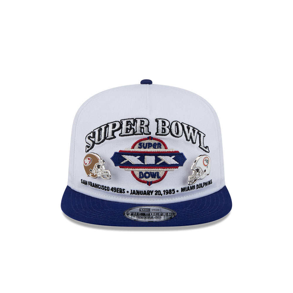 Esta gorra plana New Era Golfer de San Francisco 49Ers VS Miami Dolphins de la colección NFL Championship Pin presenta un diseño con Super Bowl bordado y el parche de la edición de este campeonato en los paneles frontales junto con dos pines en forma de los cascos de los equipos y el flag de New Era bordado del lado izquierdo. Cómprala ya.