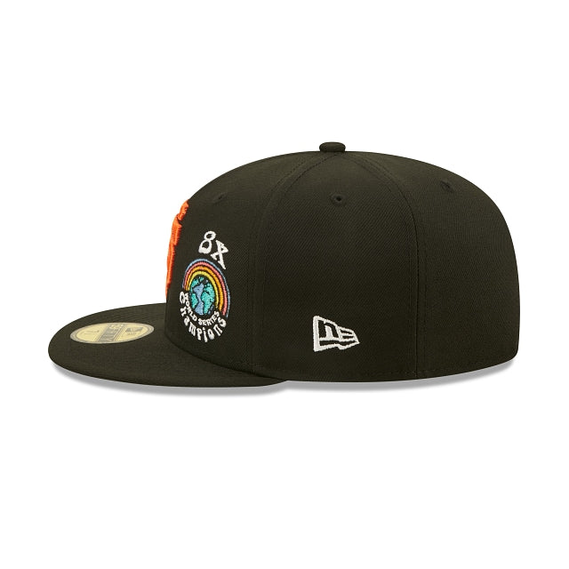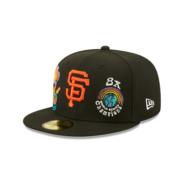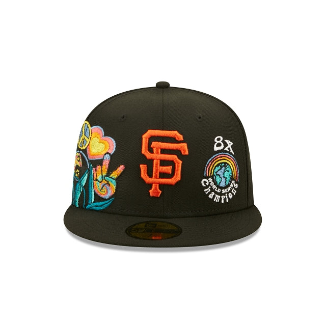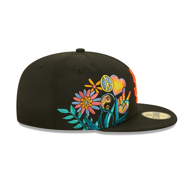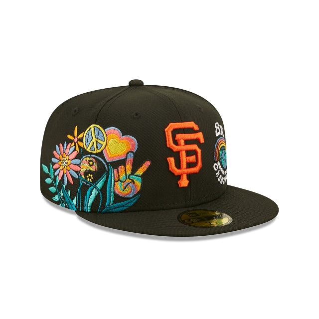 Esta 59FIFTY de San Francisco Giants de la colección Groovy presenta el logotipo de los Giants bordado en los paneles frontales a juego con un parche de World Series Champions y un diseño de peace and love floral en el lado derecho. Detalles adicionales incluyen undervisor azul. Cómprala ya.