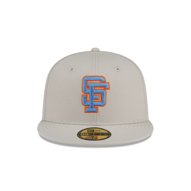 Esta gorra New Era 59FIFTY de San Francisco Giants de la colección Just Caps Drop 16 en color gris presenta el logo de los Giants bordado en los paneles frontales en detalles azul, blanco y naranja, la silueta plana presenta el undervisor en color naranja y el Batterman en la parte trasera. Cómprala ya.