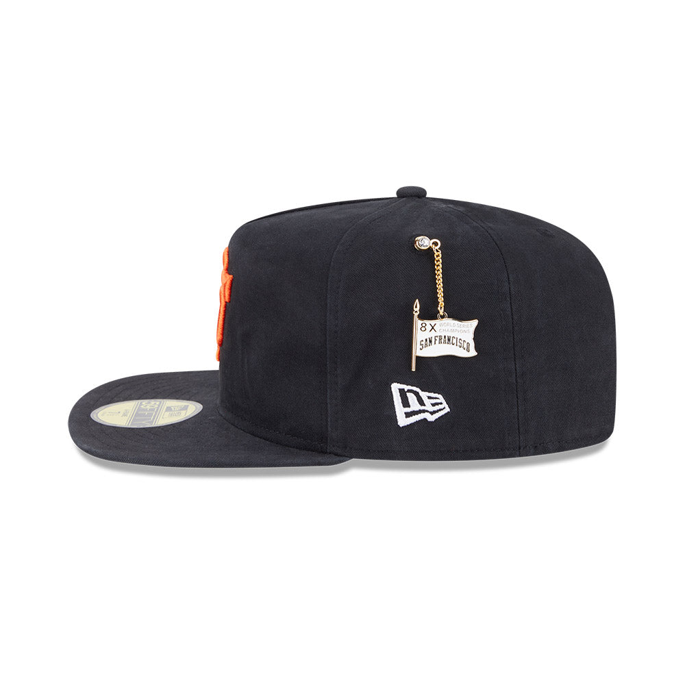 Esta gorra plana New Era 59FIFTY A-Frame de San Francisco Giants de la colección MLB Championship Side Flag presenta el logotipo de los Giants bordado en los paneles frontales, un parche del estadio del equipo del lado derecho, el MLB Batterman al reverso y el flag de New Era bordado del lado izquierdo acompañado de un pin en forma de bandera con los títulos del equipo. Cómprala ya.