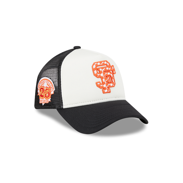 Esta gorra New Era 9FORTY AF Trucker de San Francisco Giants de la colección MLB Check Flag presenta el frente blanco con el logotipo de los Giants en los paneles frontales, un parche conmemorativo del lado derecho, malla y visera del color del equipo, y el flag de New Era bordado en el lado izquierdo. Luce con estilo. Cómprala ya.