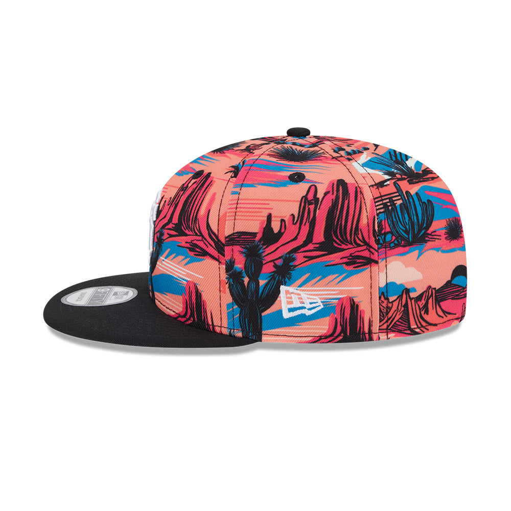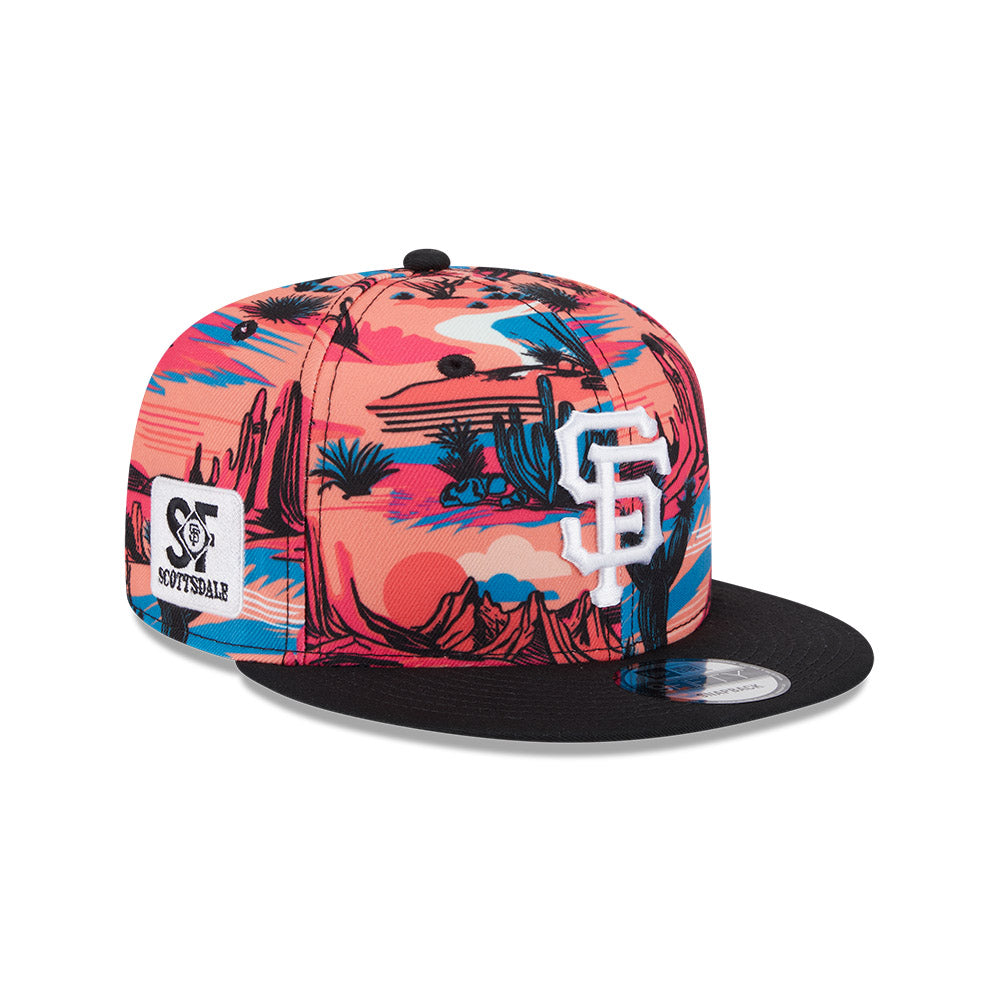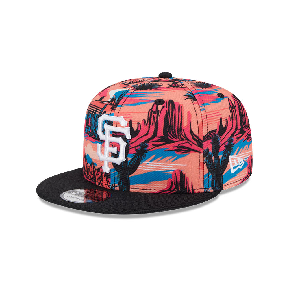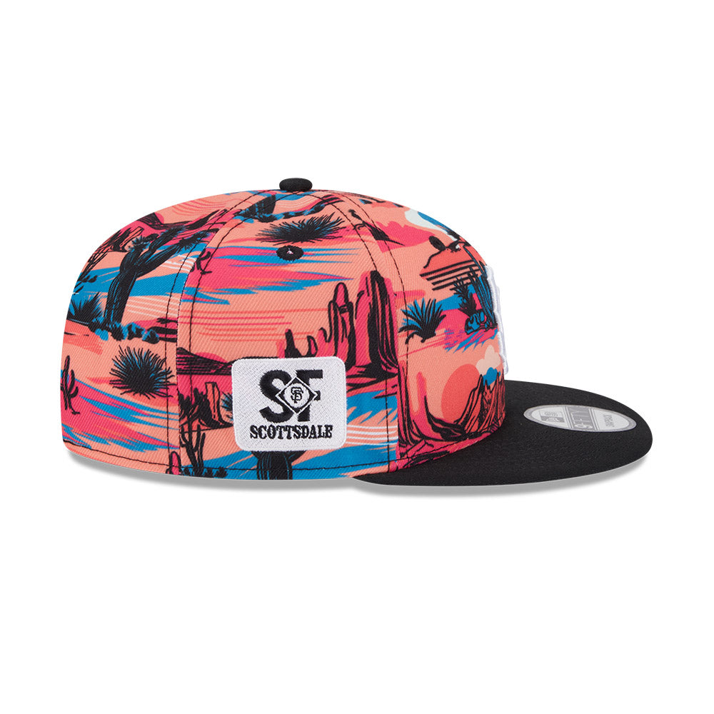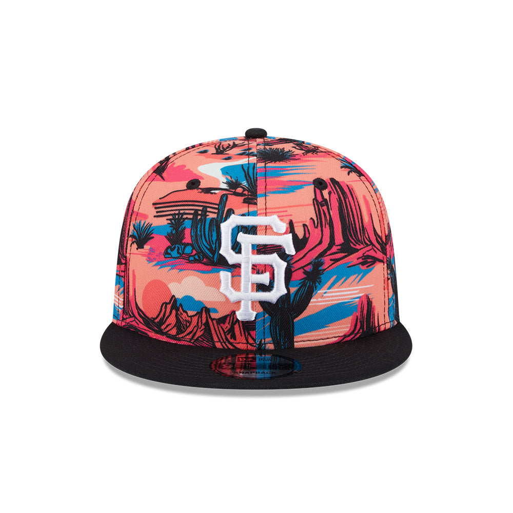 Esta gorra plana New Era 9FIFTY de San Francisco Giants de la colección MLB Spring Training Fan Pack 2025 presenta un diseño con un estampado de paisaje desértico en la corona con el logotipo de los Giants bordado en los paneles frontales, un parche representativo del equipo del lado derecho y el flag de New Era bordado del lado izquierdo. Apoya a tu equipo y cómprala ya.