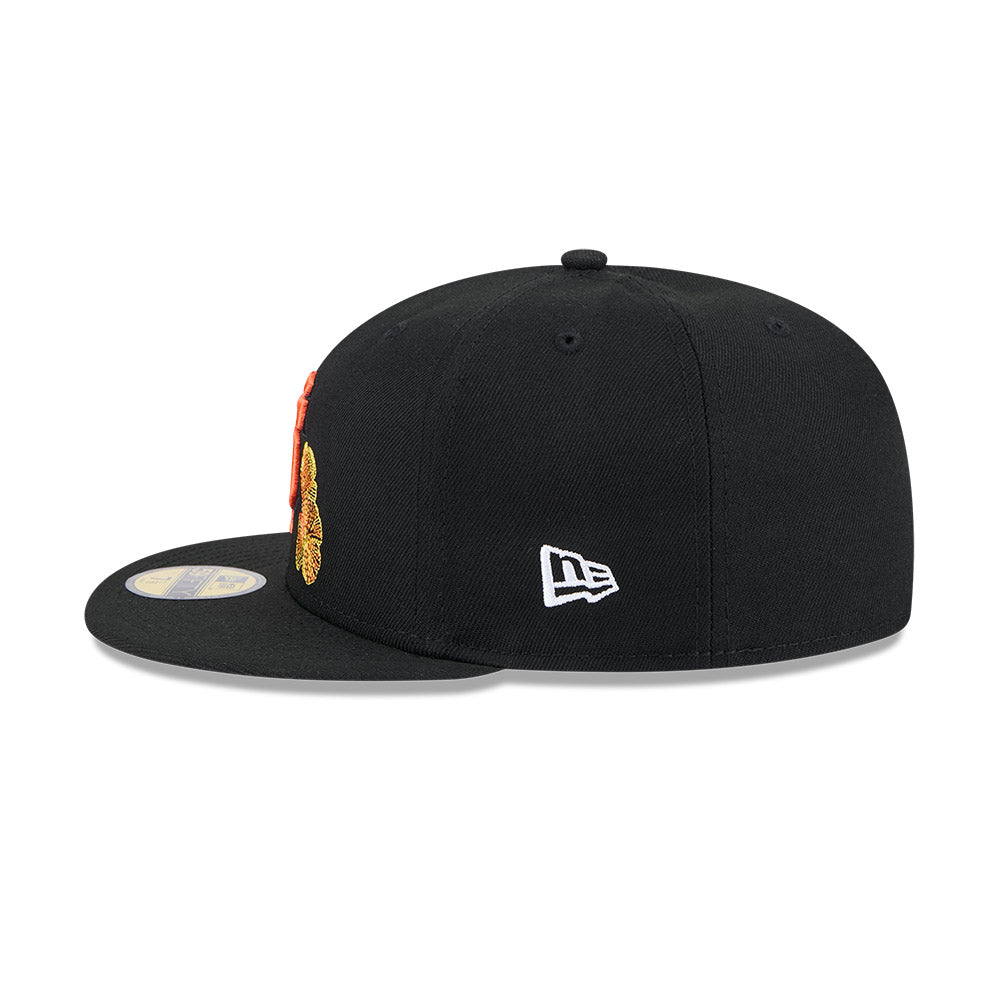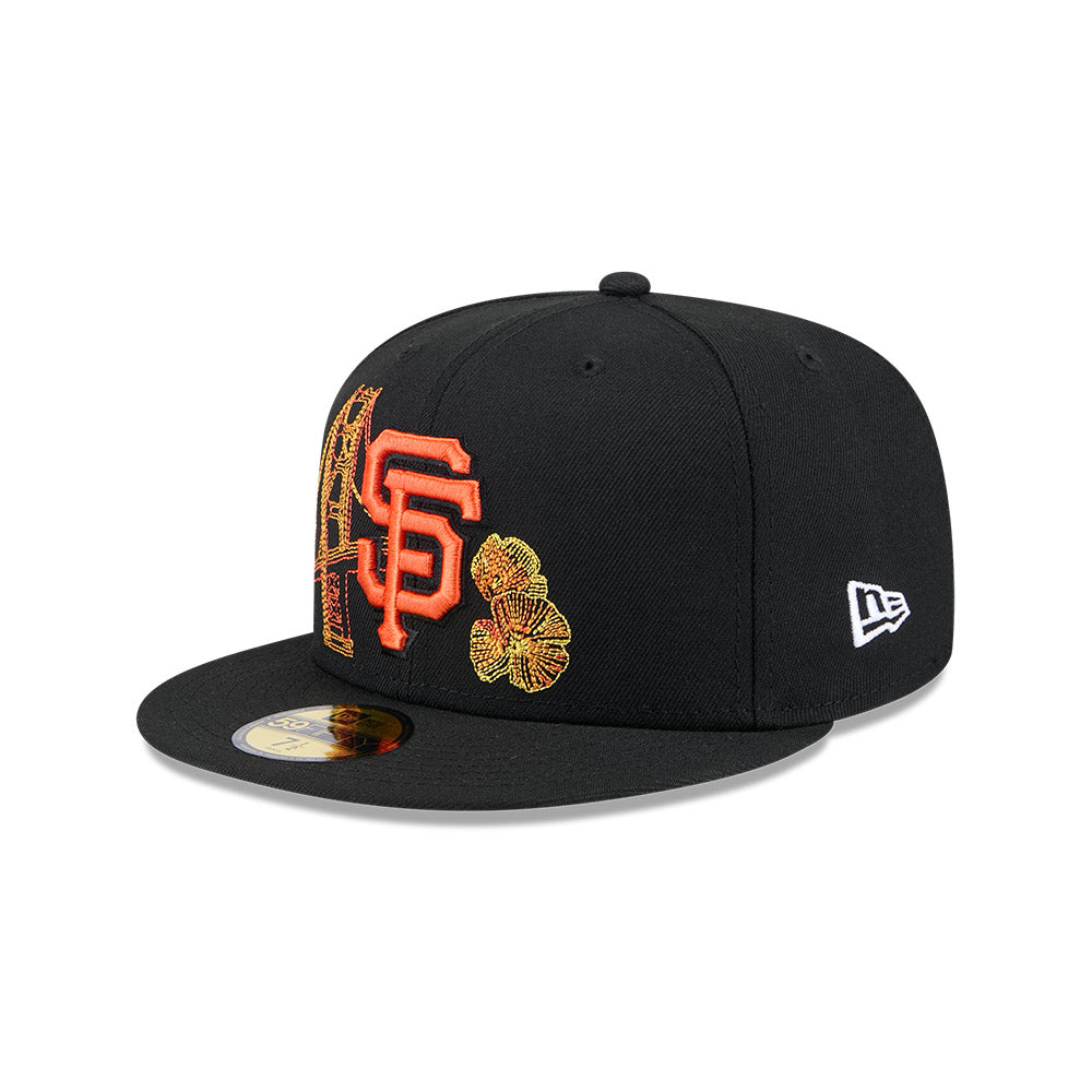Esta gorra plana New Era 59FIFTY de San Francisco Giants de la colección MLB State Stitch presenta un diseño con el logotipo de los Giants bordado en los paneles frontales acompañado de bordados representativos de la sede del equipo, un parche conmemorativo del lado derecho, el MLB Batterman al reverso y el flag de New Era bordado del lado izquierdo. Cómprala ya.