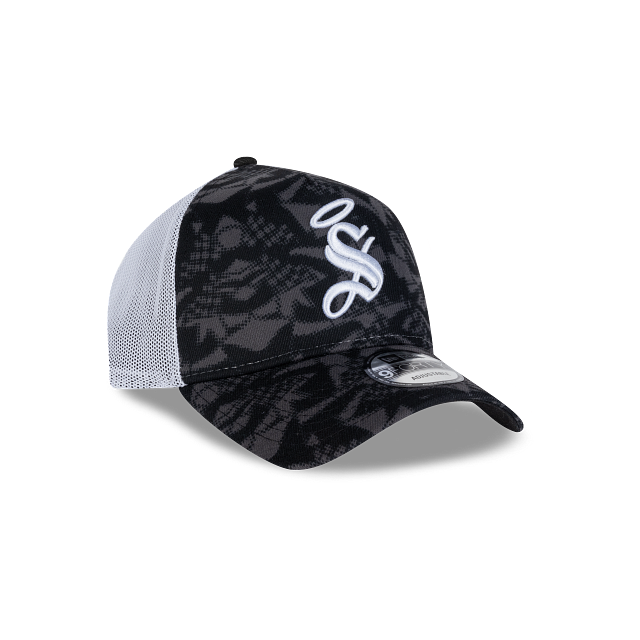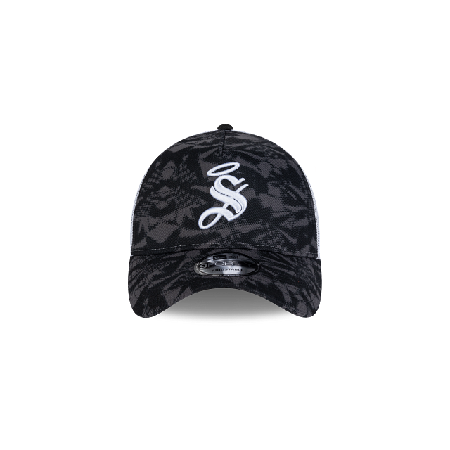 Esta gorra New Era 9FORTY AF de Santos Laguna de la colección Futbol Mexicano Camo presenta un diseño de camuflaje negro con el logotipo de Santos en blanco bordado en los paneles frontales, malla al reverso y el flag de New Era bordado en el lado izquierdo. Apoya a tu equipo y cómprala ya.