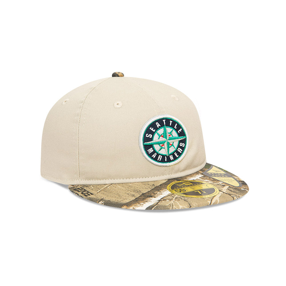 Esta gorra plana New Era 59FIFTY de Seattle Mariners de la colección MLB Camo Real Tree presenta un diseño con el logotipo de los Mariners bordado en los paneles frontales, el visor con camuflaje de hojas, el MLB Batterman al reverso y el flag de New Era bordado del lado izquierdo. Cómprala ya.