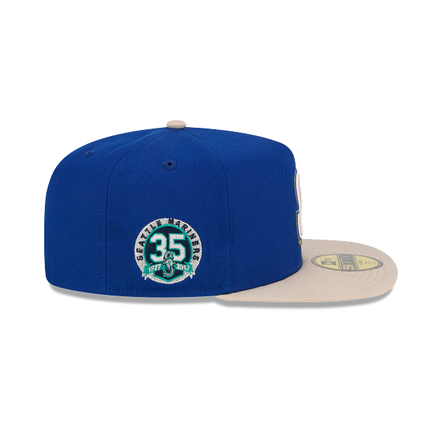 Esta gorra New Era 59FIFTY AF de Seattle Mariners de la colección MLB Canvas presenta un diseño two tone con el logotipo de los Mariners bordado en el panel frontal de la silueta, un parche conmemorativo del lado derecho, el MLB Batterman al reverso y el flag de New Era bordado en el lado izquierdo. Dale un toque a tu outfit y cómprala ya.