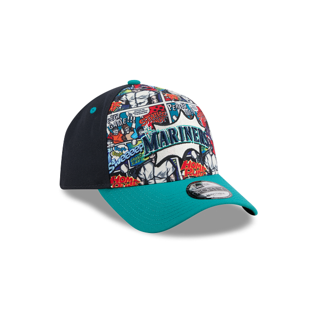 Esta gorra curva New Era 9FORTY A-Frame de Seattle Mariners de la colección MLB Diamond Hero Edition presenta un diseño inspirado en los cómics, el nombre de los Mariners bordado en los paneles frontales, el MLB Batterman en la parte de atrás y el flag de New Era bordado del lado izquierdo. Cómprala ya.
