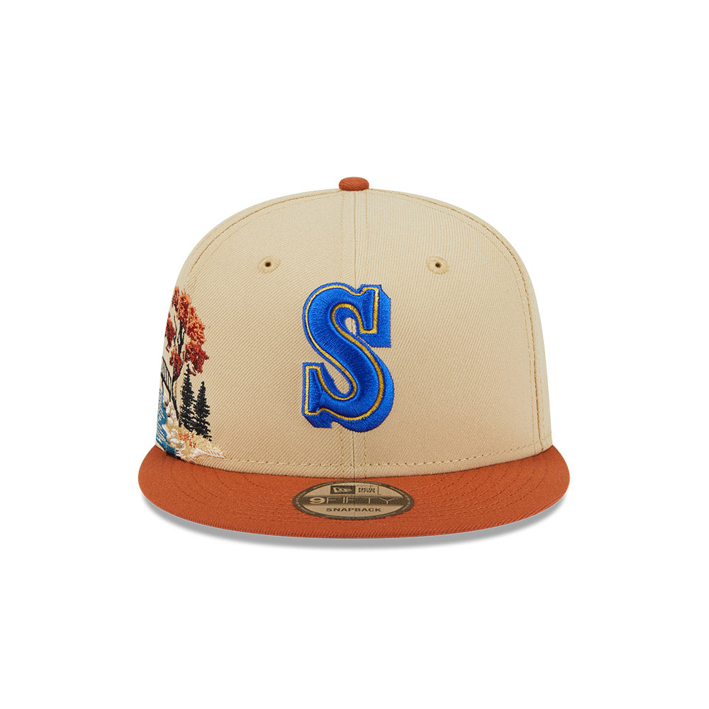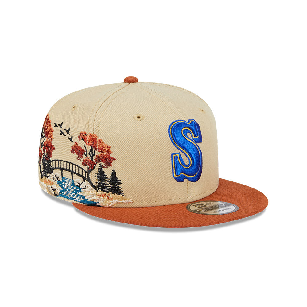 Esta gorra plana New Era 9FIFTY de Seattle Mariners de la colección MLB Fall Landscape presenta un diseño inspirado en la estación de otoño con el logotipo de los Mariners bordado en los paneles frontales, un paisaje otoñal del lado derecho y el flag de New Era bordado del lado izquierdo. Cómprala ya.