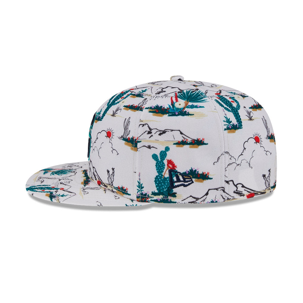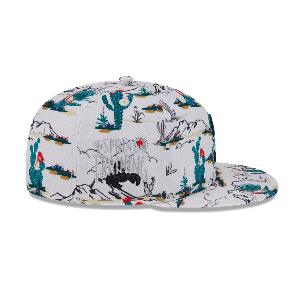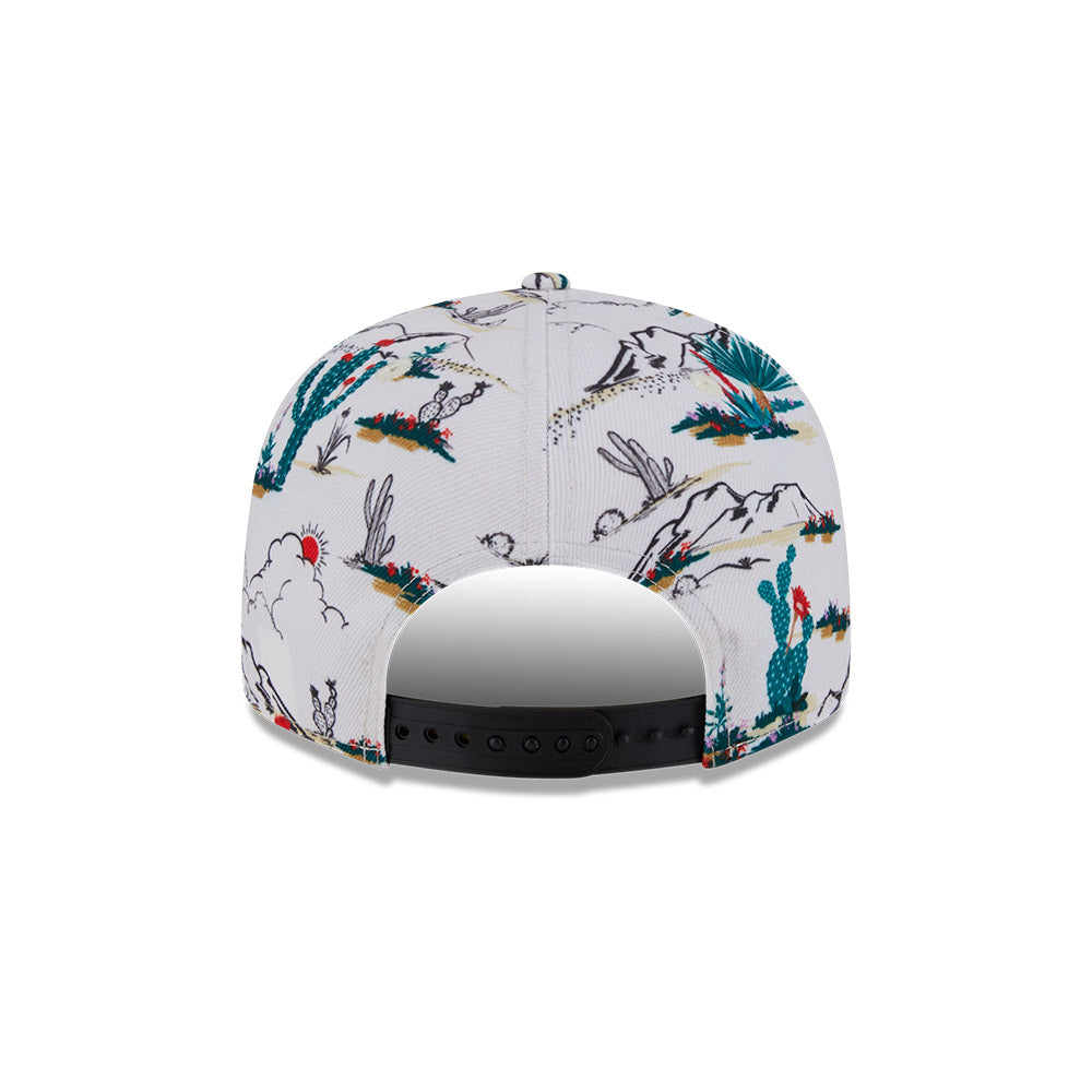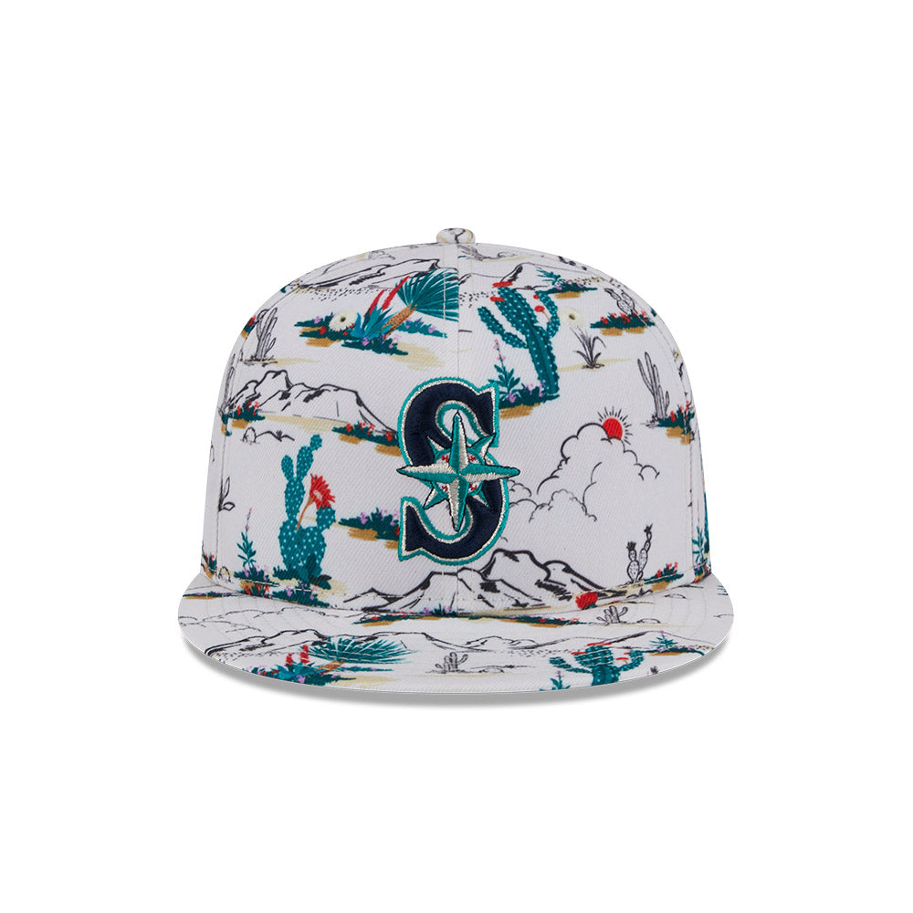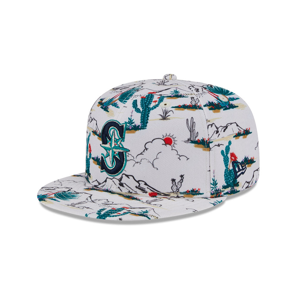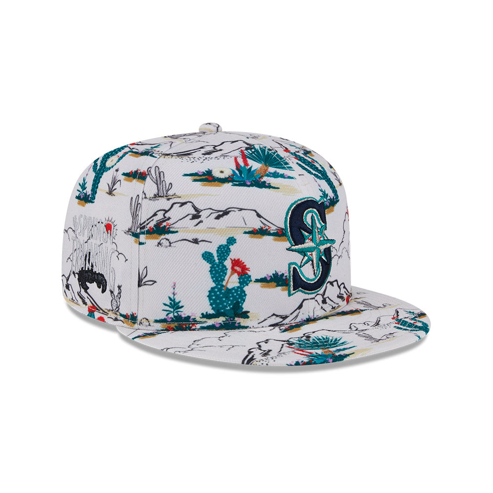 Esta gorra plana New Era 9FIFTY de Seattle Mariners de la colección MLB Spring Training Fan Pack 2025 presenta un all over print de un paisaje desértico con el logotipo de los Mariners bordado en los paneles frontales, Spring Training bordado del lado derecho y el flag de New Era bordado del lado izquierdo. Cómprala ya.