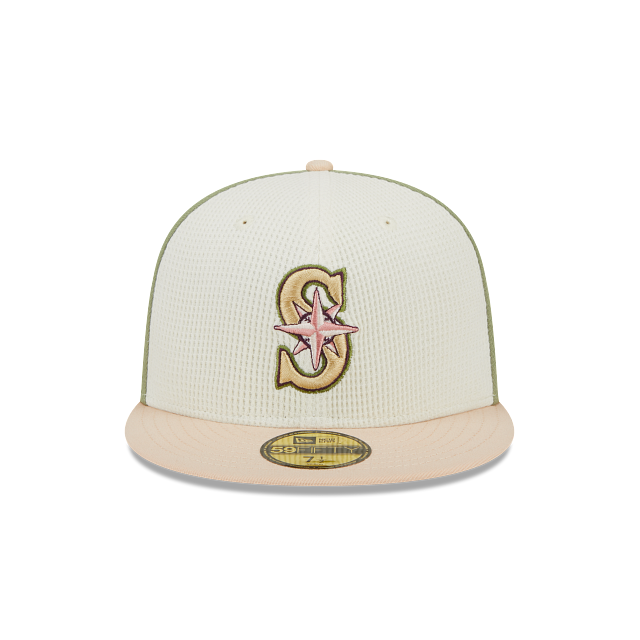 Esta gorra New Era 59FIFTY de Seattle Mariners de la colección MLB Thermal Front presenta un diseño multicolor con el logotipo de los Mariners bordado en los paneles frontales blancos, un parche conmemorativo del lado derecho y el flag de New Era bordado en el lado izquierdo. Luce con estilo y cómprala ya.