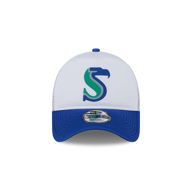 Esta gorra New Era 9FORTY AF de Seattle Seahawks de la colección NFL City Originals presenta un diseño con un logotipo modificado de los Seahawks en los paneles frontales y el original del lado derecho, visera y broche de plástico del mismo color, malla blanca al reverso, y el flag de New Era bordado en el lado izquierdo. Cómprala ya.