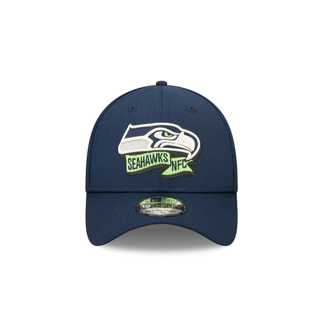 La temporada de la NFL ya esta aquí. Muestra los colores de tu equipo con esta gorra New Era 39THIRTY de Seattle Seahawks NFL Sideline 2022 Coach la cual presenta el logo del equipo bordado en los paneles frontales a juego con una bandera con el nombre y su conferencia, un parche de la NFL en el lado derecho y un logo del equipo en la parte trasera. Cómprala ya.