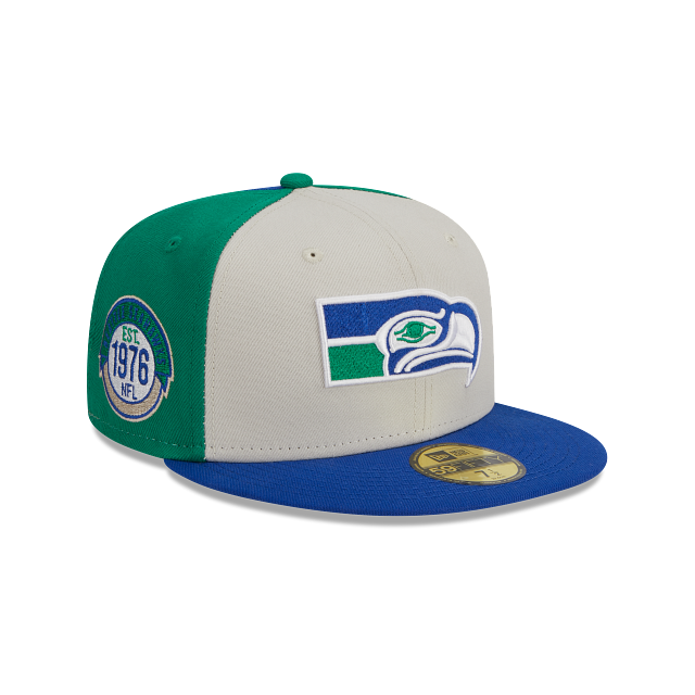 Esta gorra New Era 59FIFTY de Seattle Seahawks de la colección NFL Sideline Historic presenta el logotipo retro de los Seahawks bordado en los paneles frontales, un parche con el año de su fundación del lado derecho, y el flag de New Era bordado en el lado izquierdo. Apoya a tu equipo y cómprala ya.