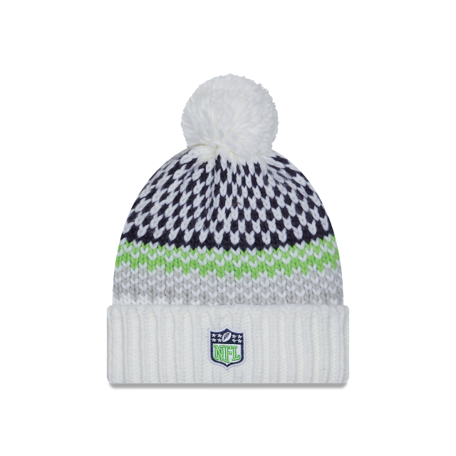 Este New Era Knit de Seattle Seahawks de la colección NFL Sideline presenta un diseño invernal en tono blanco, el logotipo de los Seahawks en la parte frontal, el logo de NFL en la parte trasera y el flag de New Era bordado en el lado izquierdo. Apoya a tu equipo y cómpralo ya.