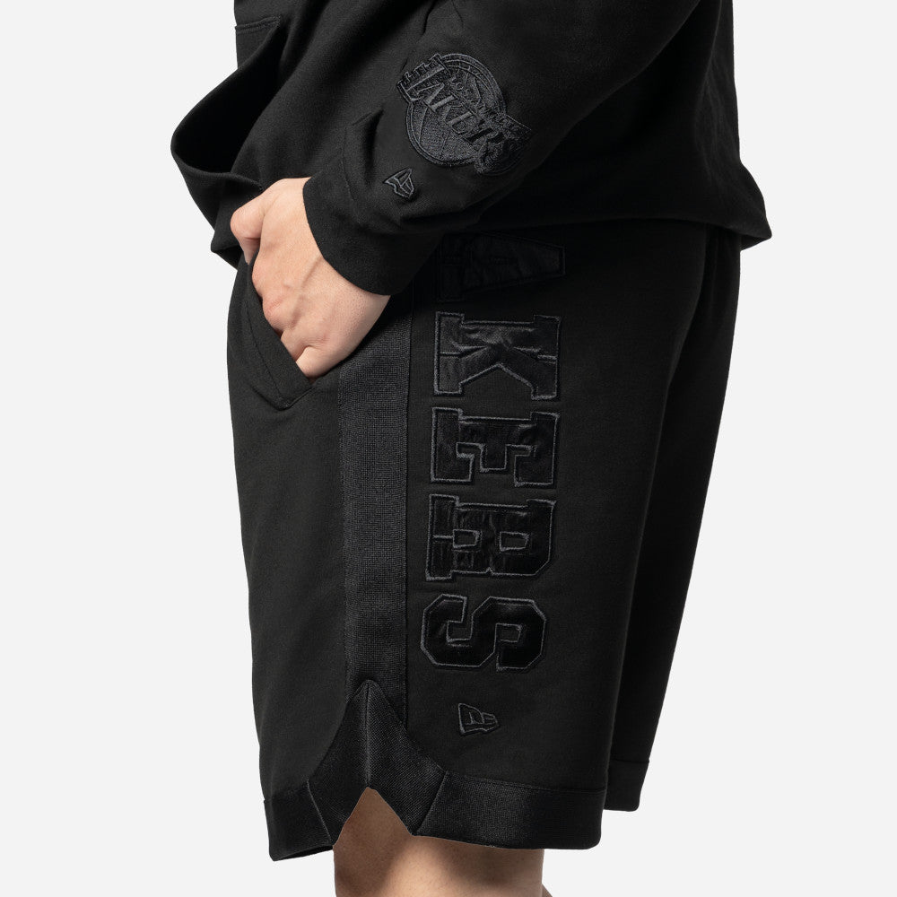 Estos Shorts New Era de Los Angeles Lakers de la colección NBA Logo Select Black on Black presentan un diseño en color negro con el logotipo de los Lakers en la pierna derecha, el nombre del equipo y el flag de New Era en la pierna izquierda. Completa tu outfit y cómpralos ya.