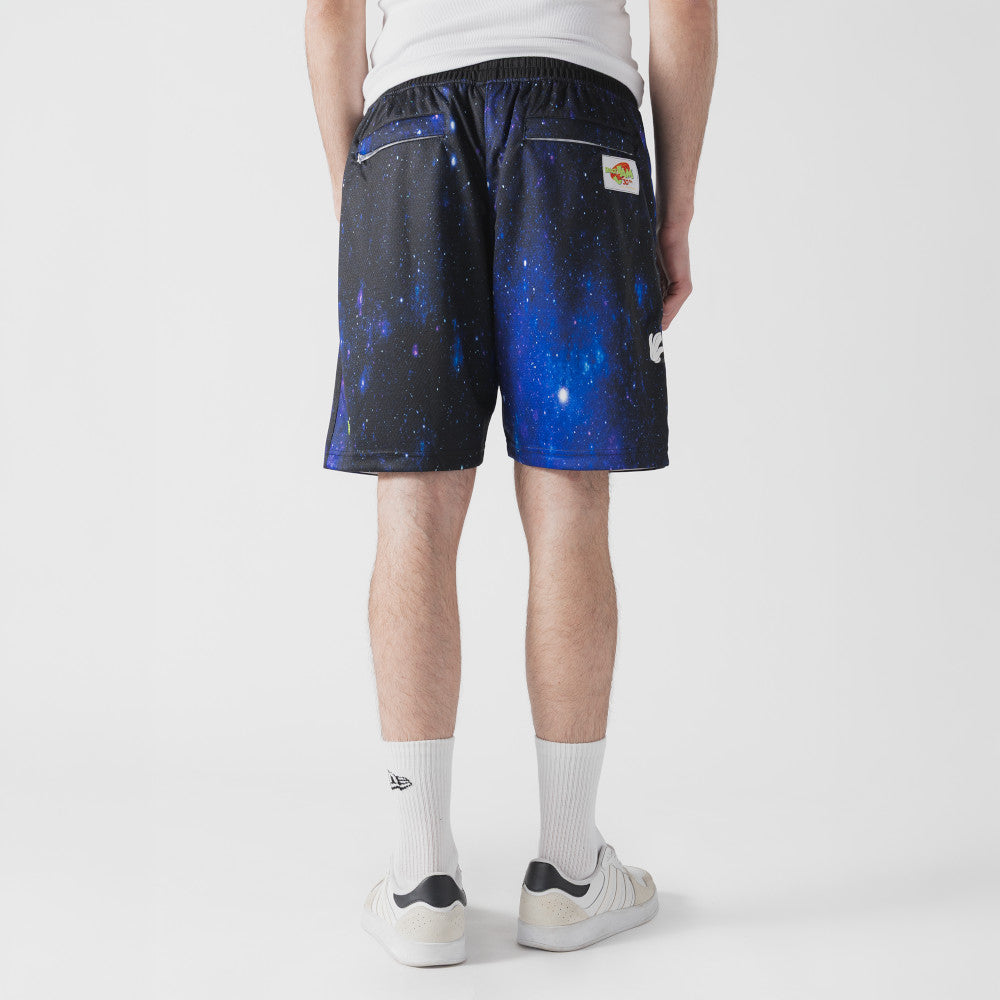 Estos Shorts New Era de la colección Space Jam presentan un diseño inspirado en el universo, Marvin el Marciano en la pierna derecha, el nombre de la película y el flag de New Era en la pierna izquierda. Cómpralos ya.