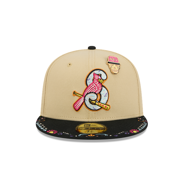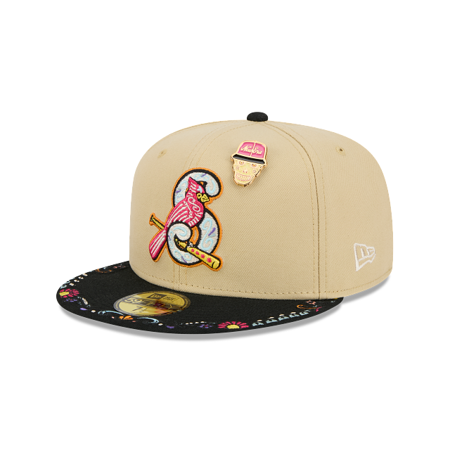 Esta gorra plana New Era 59FIFTY de Springfield Cardinals de la colección MiLB Skull Pin presenta un diseño inspirado en el Día de Muertos con el logotipo de los Cardinals bordado en los paneles frontales acompañado de un pin en forma de calavera, detalles bordados en el visor, el logo de la MiLB al reverso y el flag de New Era bordado del lado izquierdo. Cómprala ya.
