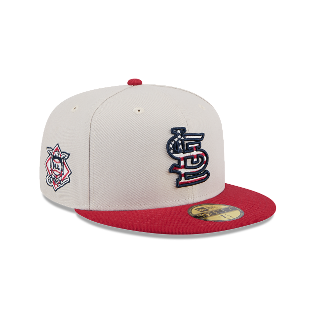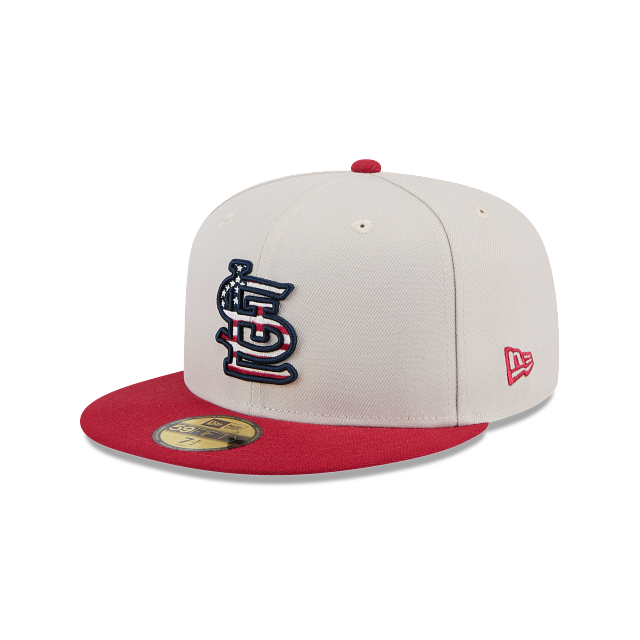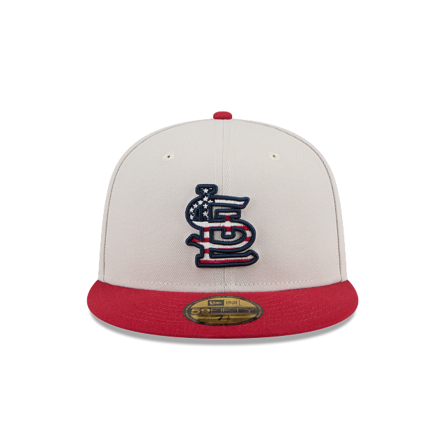 Esta gorra New Era 59FIFTY de St. Louis Cardinals de la colección MLB 4TH of July presenta una corona blanca con el logotipo de los Cardinals con estrellas y líneas de la bandera de Estados Unidos bordado en los paneles frontales, un parche de su conferencia del lado derecho y el MLB Batterman al reverso, y el flag de New Era bordado en el lado izquierdo. Cómprala ya.