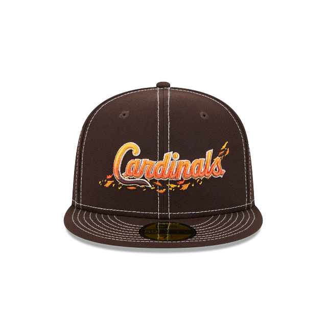Esta gorra plana New Era 59FIFTY de St. Louis Cardinals de la colección MLB Fall Foliage presenta un diseño inspirado en la estación de otoño con el nombre de los Cardinals bordado en los paneles frontales, un parche conmemorativo del lado derecho, el MLB Batterman al reverso y el flag de New Era bordado del lado izquierdo. Cómprala ya.