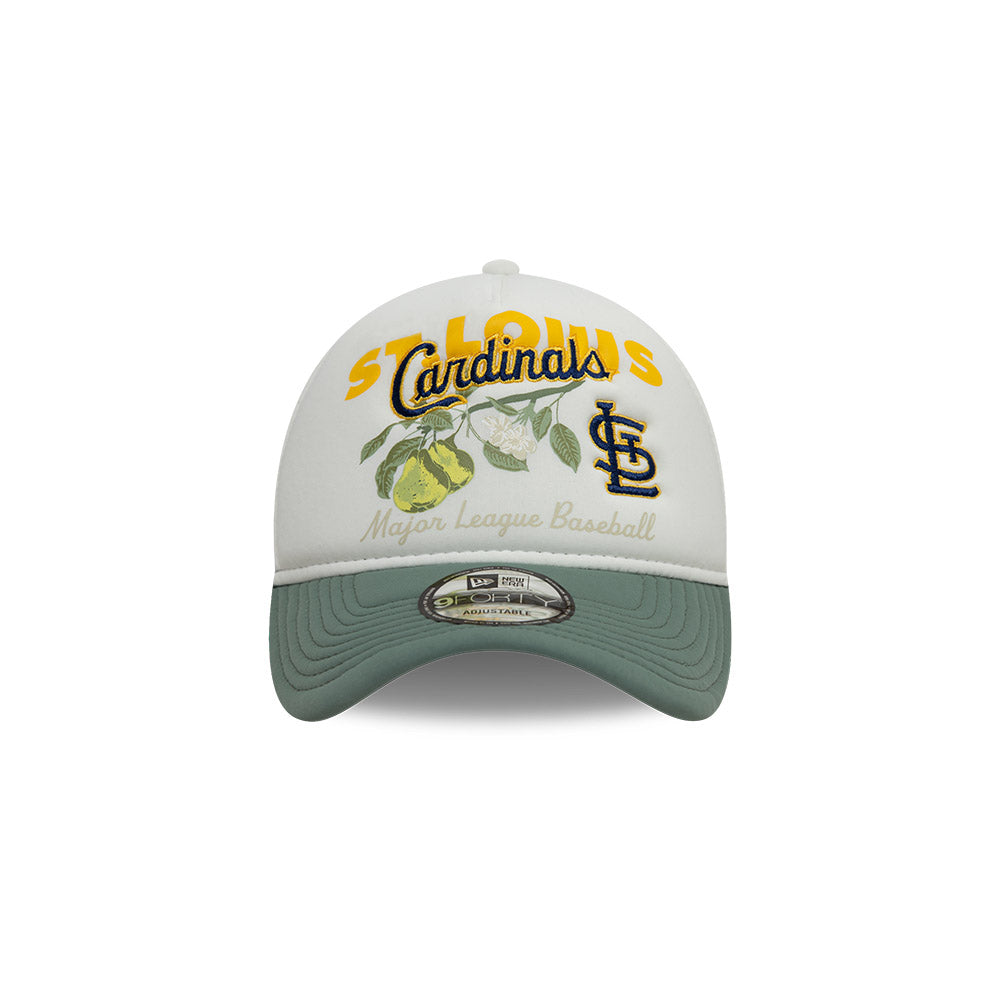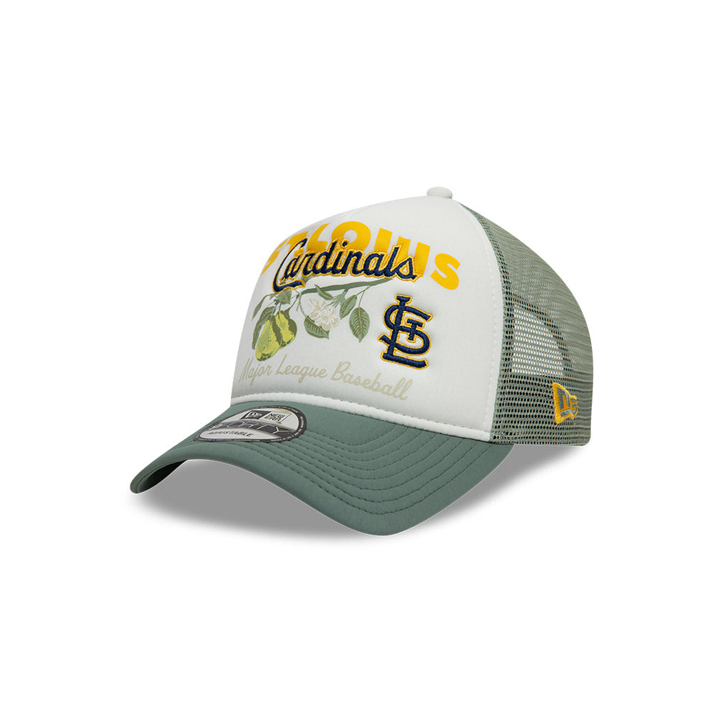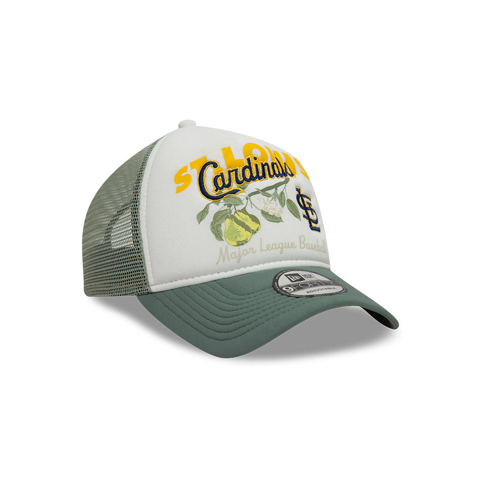 Esta gorra curva New Era 9FORTY A-Frame de St. Louis Cardinals de la colección MLB Fruit Graphic presenta el nombre y logotipo de los Cardinals en los paneles frontales junto con un detalle frutal, malla trucker al reverso y el flag de New Era bordado del lado izquierdo. Cómprala ya.