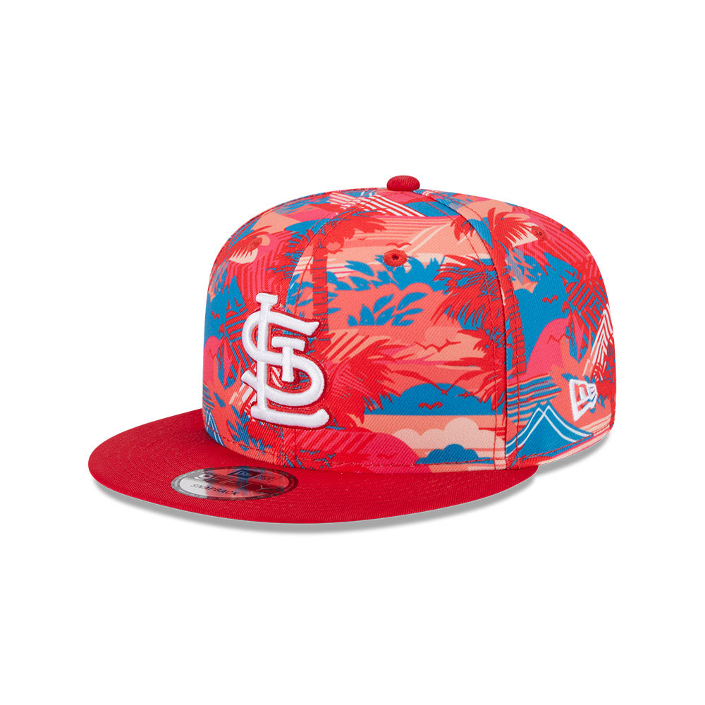 Esta gorra plana New Era 9FIFTY de St. Louis Cardinals de la colección MLB Spring Training Fan Pack 2025 presenta un diseño con un estampado de paisaje tropical en la corona con el logotipo de los Cardinals bordado en los paneles frontales, un parche representativo del equipo del lado derecho y el flag de New Era bordado del lado izquierdo. Apoya a tu equipo y cómprala ya.