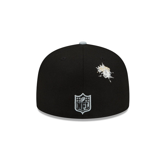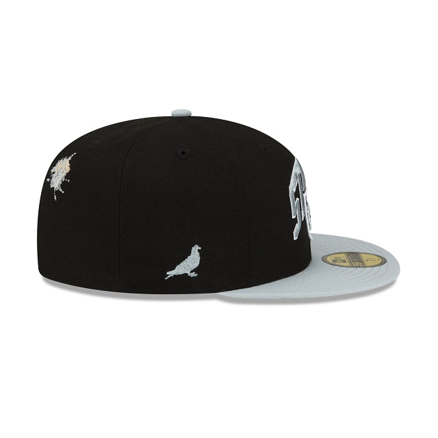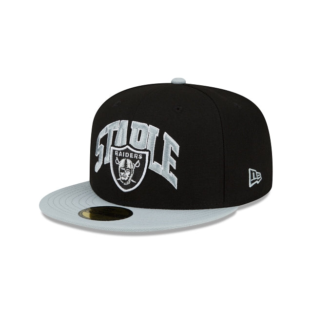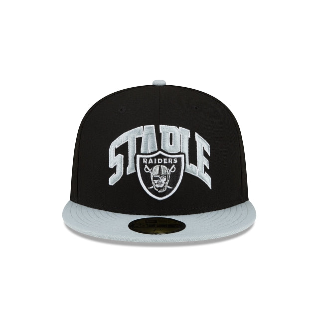 Esta gorra New Era 59FIFTY de Las Vegas Raiders de la colección Staple X NFL presenta el logo de los Raiders bordado en los paneles frontales entre un script oversize de Staple, el logo de Staple Pigeon en el lado derecho y el logo de la NFL a juego con un bordado inspirado en Staple en la parte trasera. Cómprala ya.