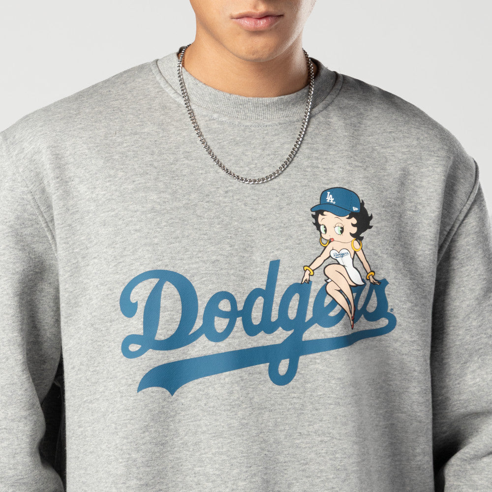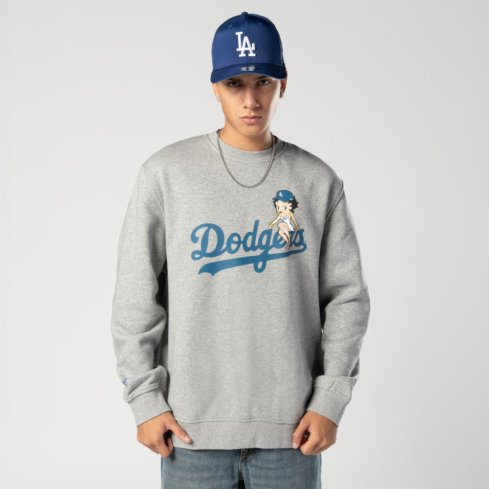 Esta Sudadera New Era de Los Angeles Dodgers de la colección Bella Doña X Betty Boop X Los Angeles Dodgers presenta un diseño en color gris, Betty Boop junto con el nombre de los Dodgers y el flag de New Era bordado en la manga izquierda. Cómprala ya.