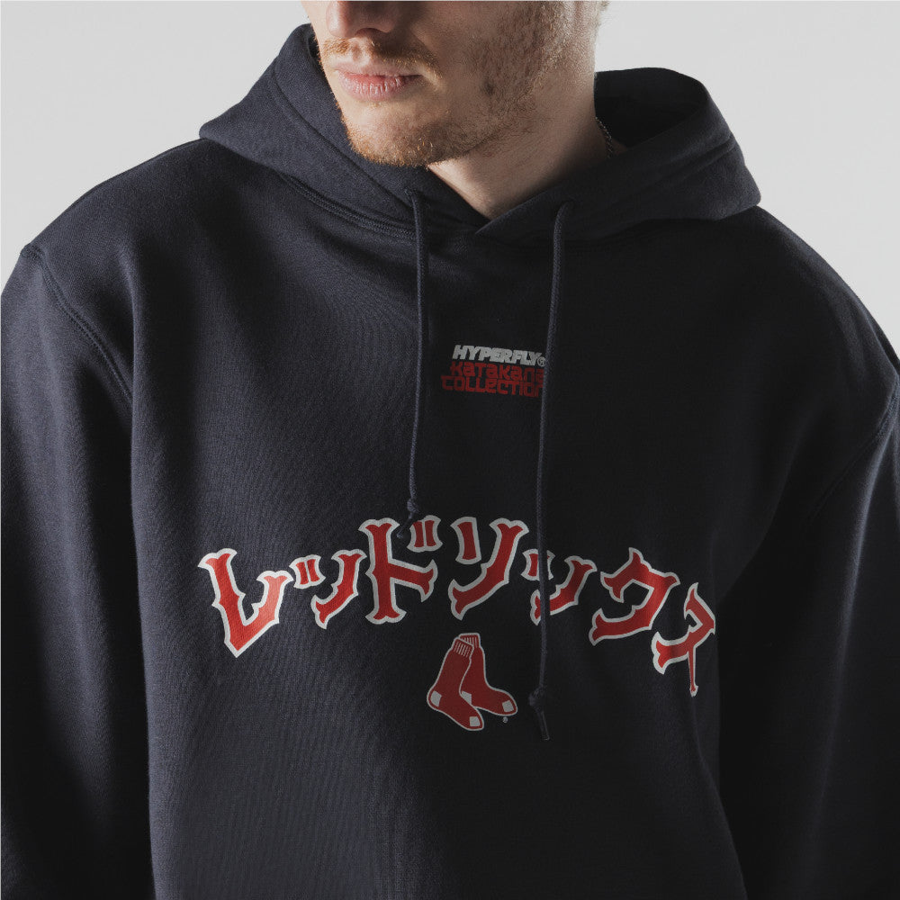 Esta Sudadera New Era de Boston Red Sox de la colección Hyperfly Katakana X MLB presenta el nombre de la colaboración, el nombre de los Red Sox en japonés y el logotipo del equipo en la parte frontal y el flag de New Era bordado en la manga izquierda. Cómprala ya.