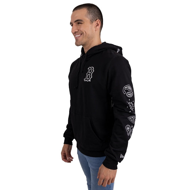 Esta Sudadera de Boston Red Sox Paisley Elements presenta detalles inspirados en paisley bordados en ambas mangas, el logo del equipo impreso en el pecho del lado izquierdo y la bandera de New Era bordada en la manga izquierd y en el hoodie. Cómprala ya.