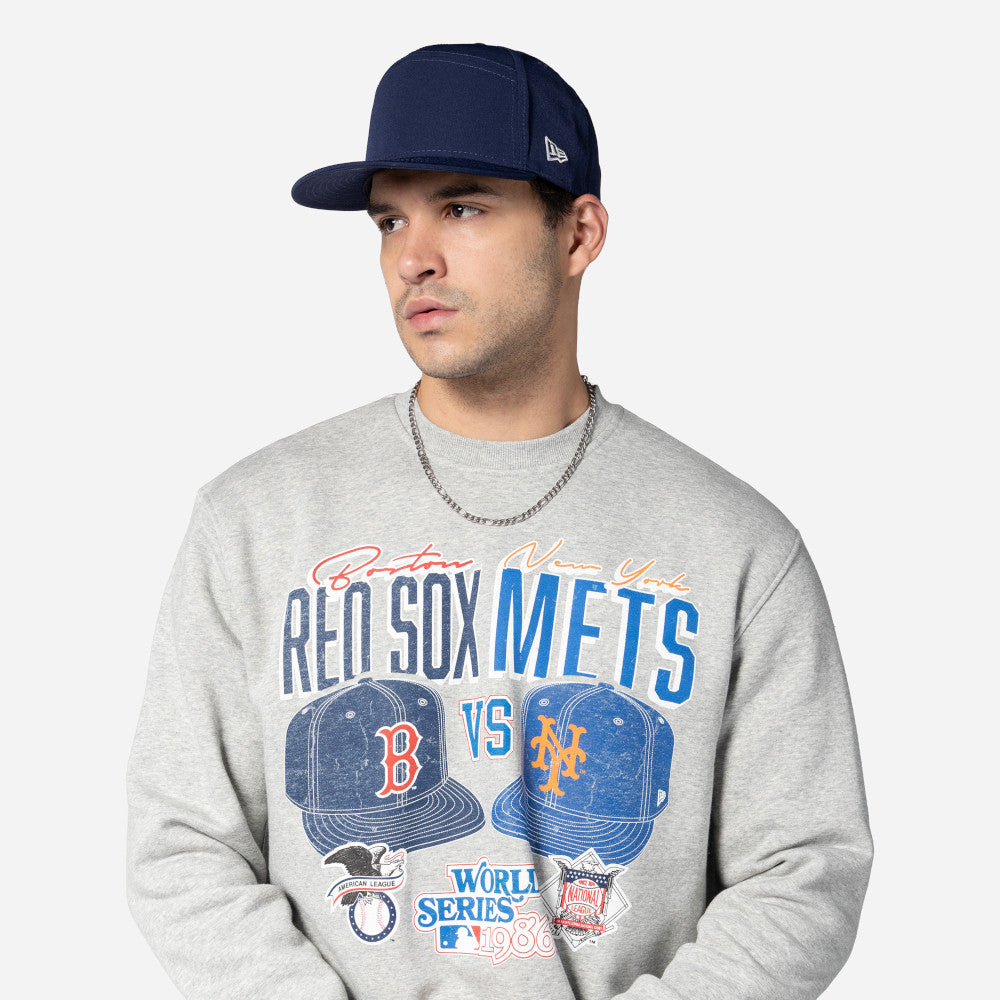 Esta Sudadera New Era de Boston Red Sox VS New York Mets de la colección MLB Sports Classics presenta un estampado con diseño de enfrentamiento con el nombre, logotipo y Liga de los Red Sox VS Mets en la parte frontal y el flag de New Era bordado en la manga izquierda. Cómprala ya.