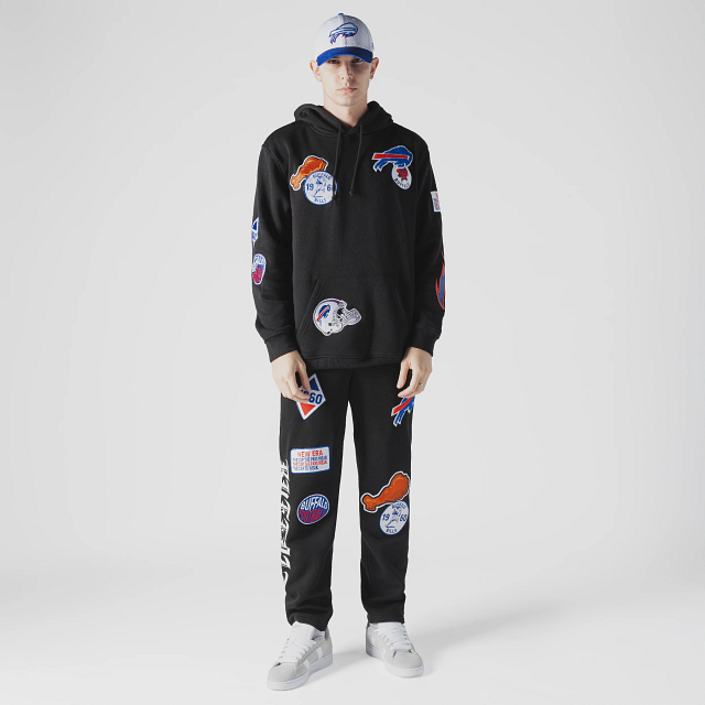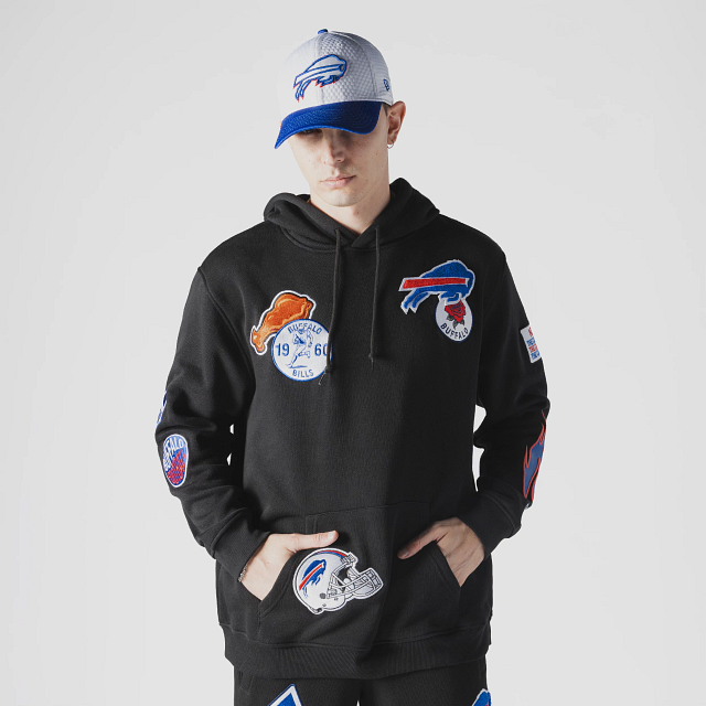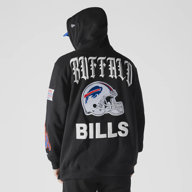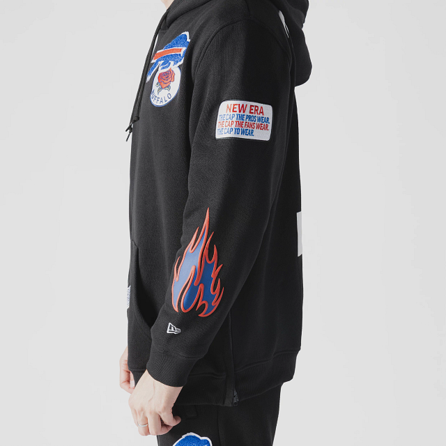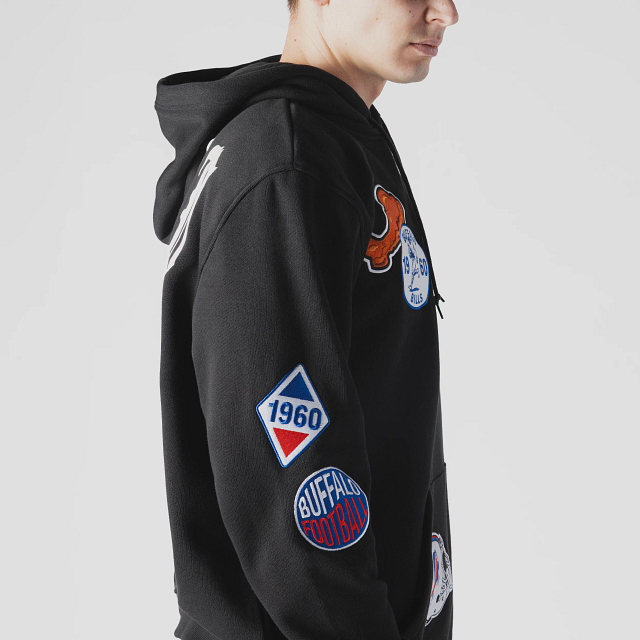 Esta Sudadera New Era de Buffalo Bills de la colección NFL Uptown Threads presenta un diseño en color negro con el logotipo y parches representativos de los Bills en la parte frontal, nombre del equipo en diferentes tipografías en la parte de atrás y el flag de New Era bordado en la manga izquierda. Cómprala ya.