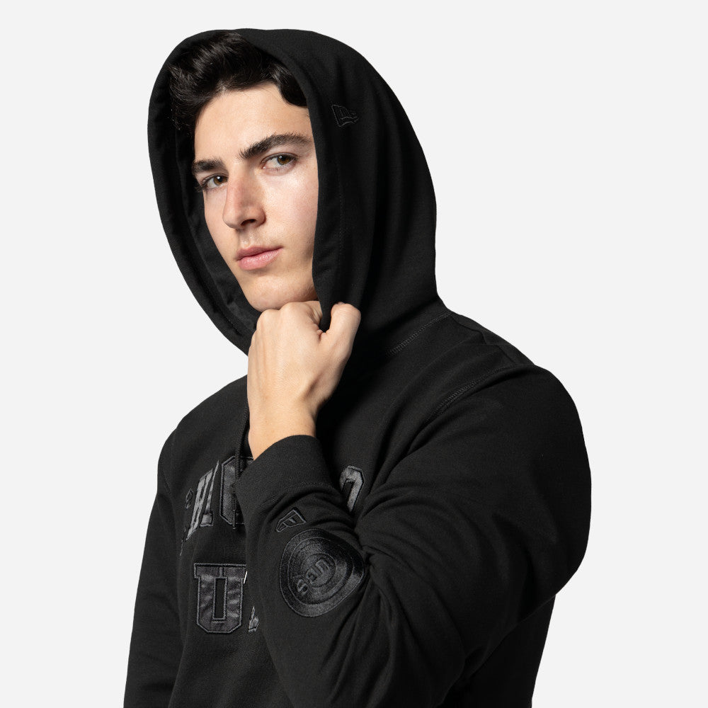 Esta Sudadera New Era de Chicago Cubs de la colección MLB Logo Select Black on Black presenta un diseño en color negro con el nombre de los Cubs en la parte frontal, el logo del equipo y el flag de New Era bordados en la manga izquierda. Completa tu outfit y cómprala ya.
