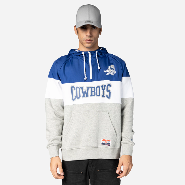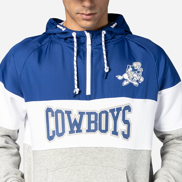 Esta Sudadera Quarter Zip New Era de Dallas Cowboys de la colección NFL Throwback presenta un diseño con el nombre y logotipo de los Cowboys en la parte frontal y el flag de New Era bordado en la manga izquierda. Luce con estilo y cómprala ya.