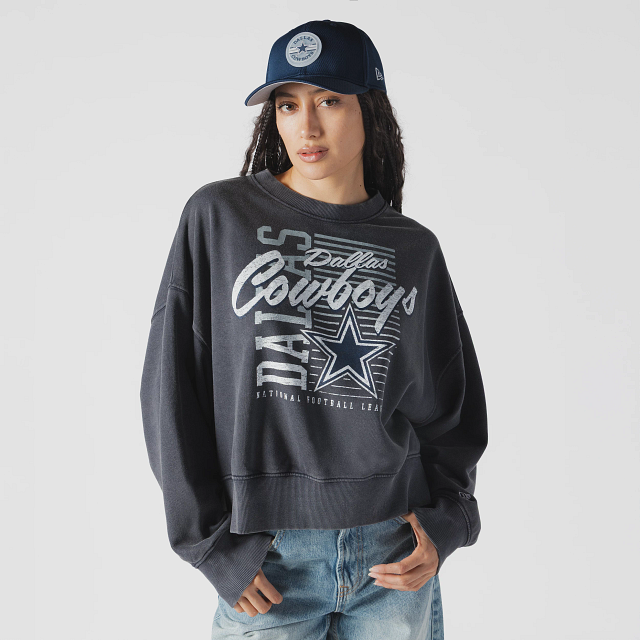 Esta Sudadera New Era para Mujer de Dallas Cowboys de la colección NFL Throwback presenta un estampado representativo de los Cowboys en la parte frontal y el flag de New Era bordado en la manga izquierda. Cómprala ya.
