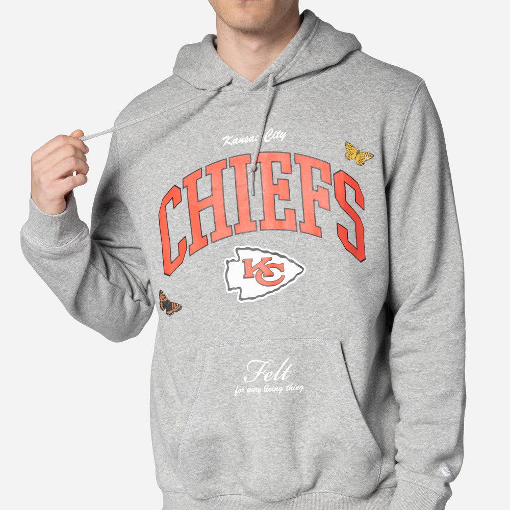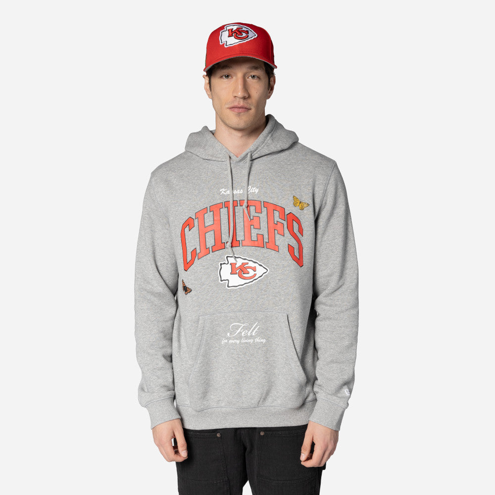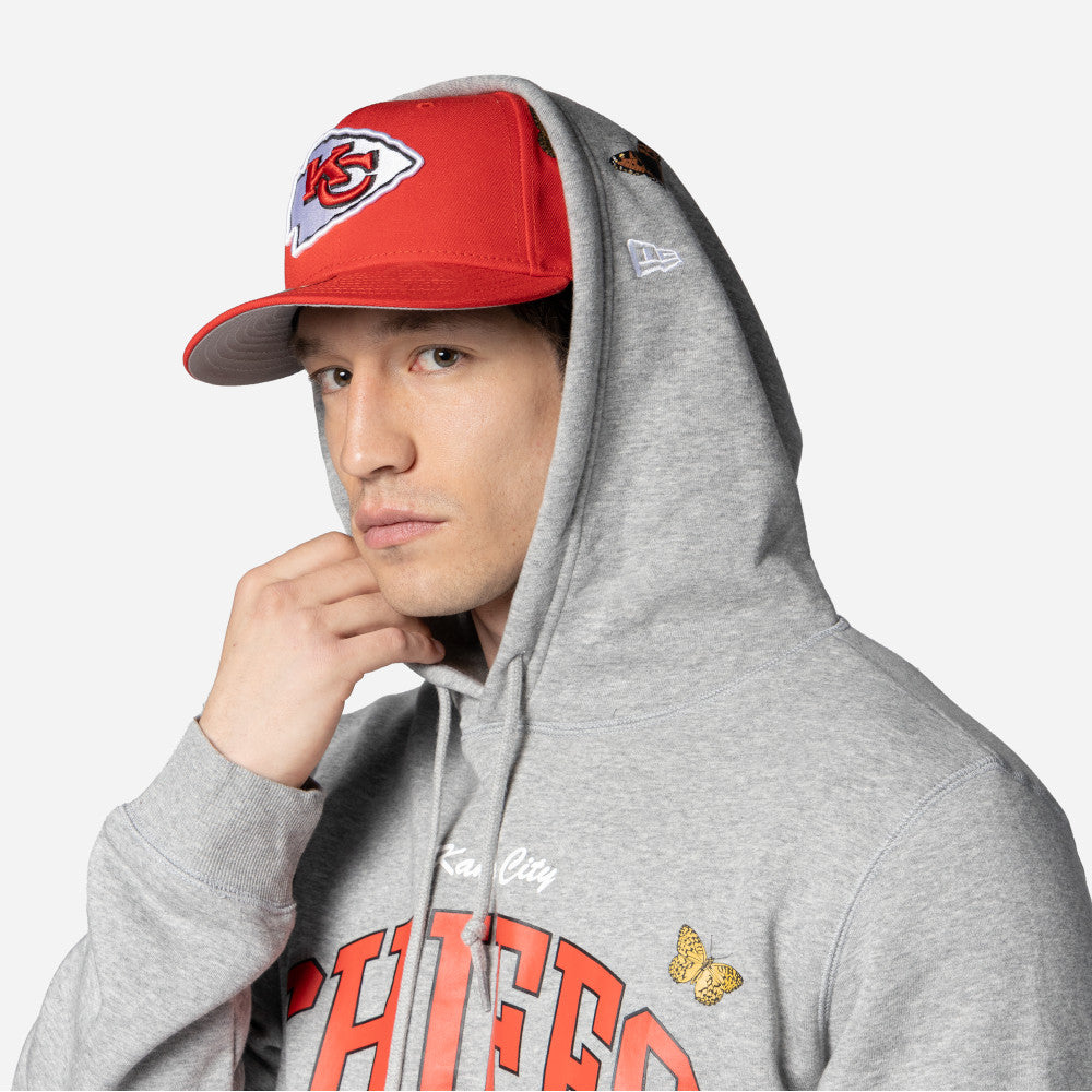 Esta Sudadera New Era de Kansas City Chiefs de la colección Felt X NFL presenta un diseño con el nombre y logotipo de los Chiefs en la parte frontal junto con el eslogan de Felt, mariposas al frente y en la gorra, y el flag de New Era bordado en la manga izquierda. Completa tu outfit y cómprala ya.