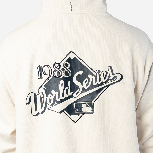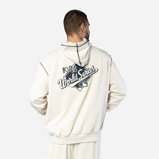 Esta Sudadera New Era de Los Angeles Dodgers de la colección MLB Vintage Frat presenta un diseño unicolor con el logotipo de los Dodgers bordado en medio del pecho, un estampado de la MLB World Series al reverso cubriendo toda la espalda y el flag de New Era en la manga izquierda. Cómprala ya.